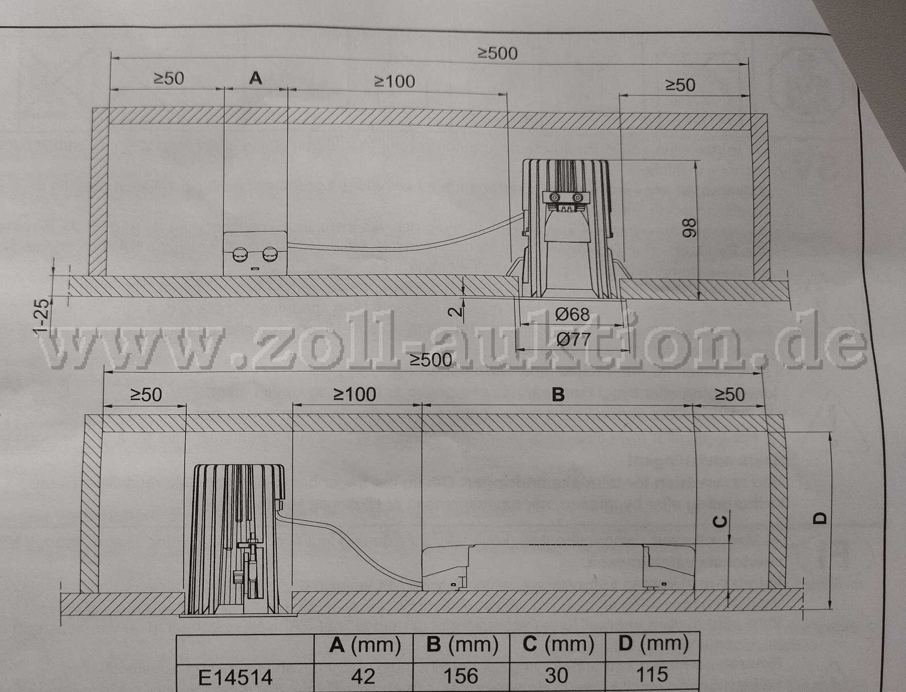 Deckenausschnitt: Ø68mm, Einbautiefe: 115 mm;