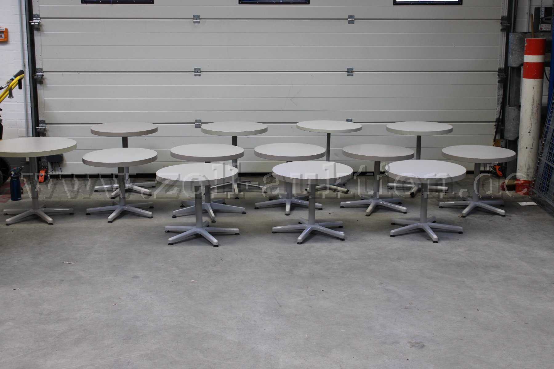 - Maße: Durchmesser Platte 60 cm; Plattenhöhe ca. 4 - 5 cm; Gesamthöhe: 8 Tische 50 cm und 4 Tische 60 cm