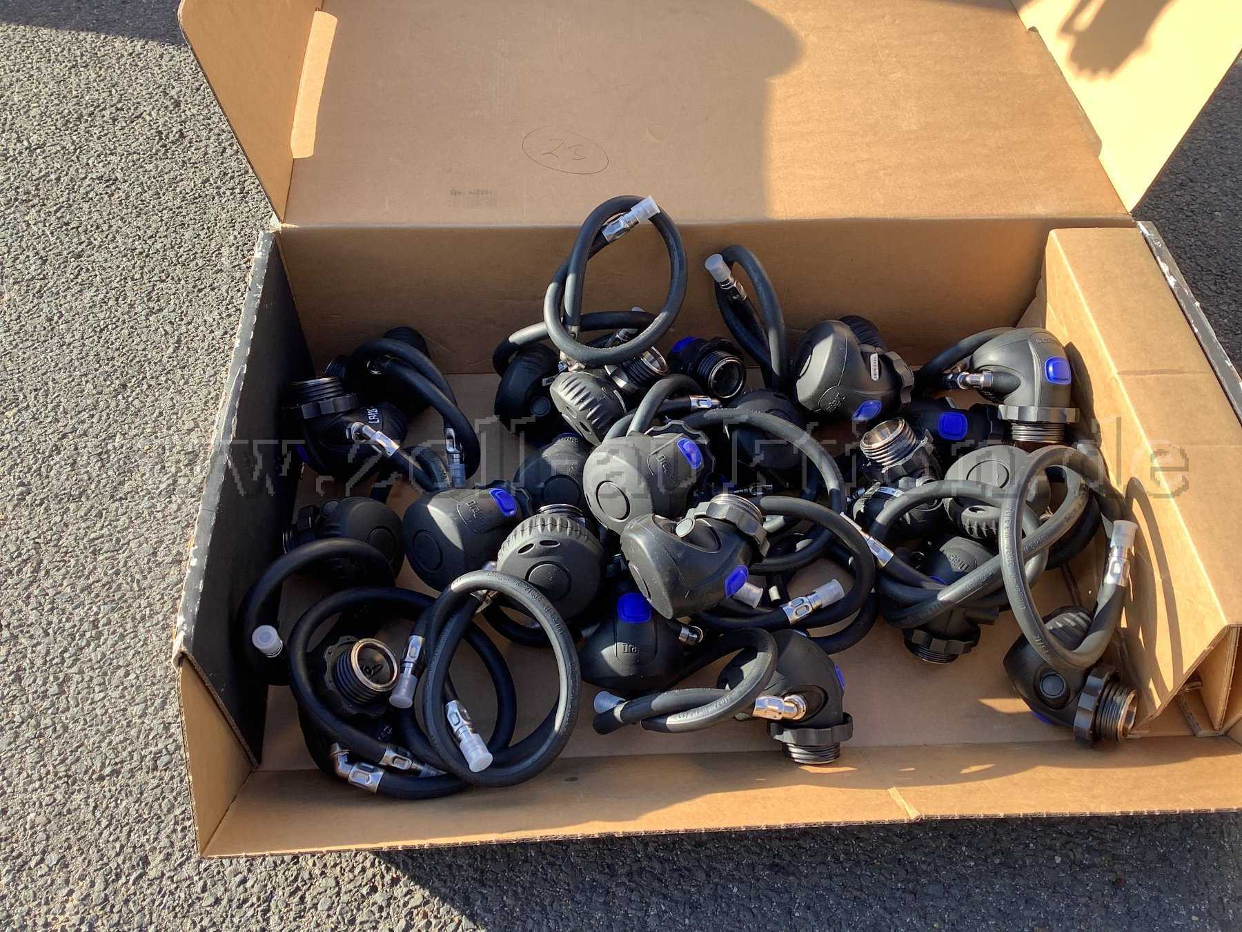 Zur Versteigerung steht ein Konvolut aus verschiedenen Atemschutzgeräten und Lungenautomaten.