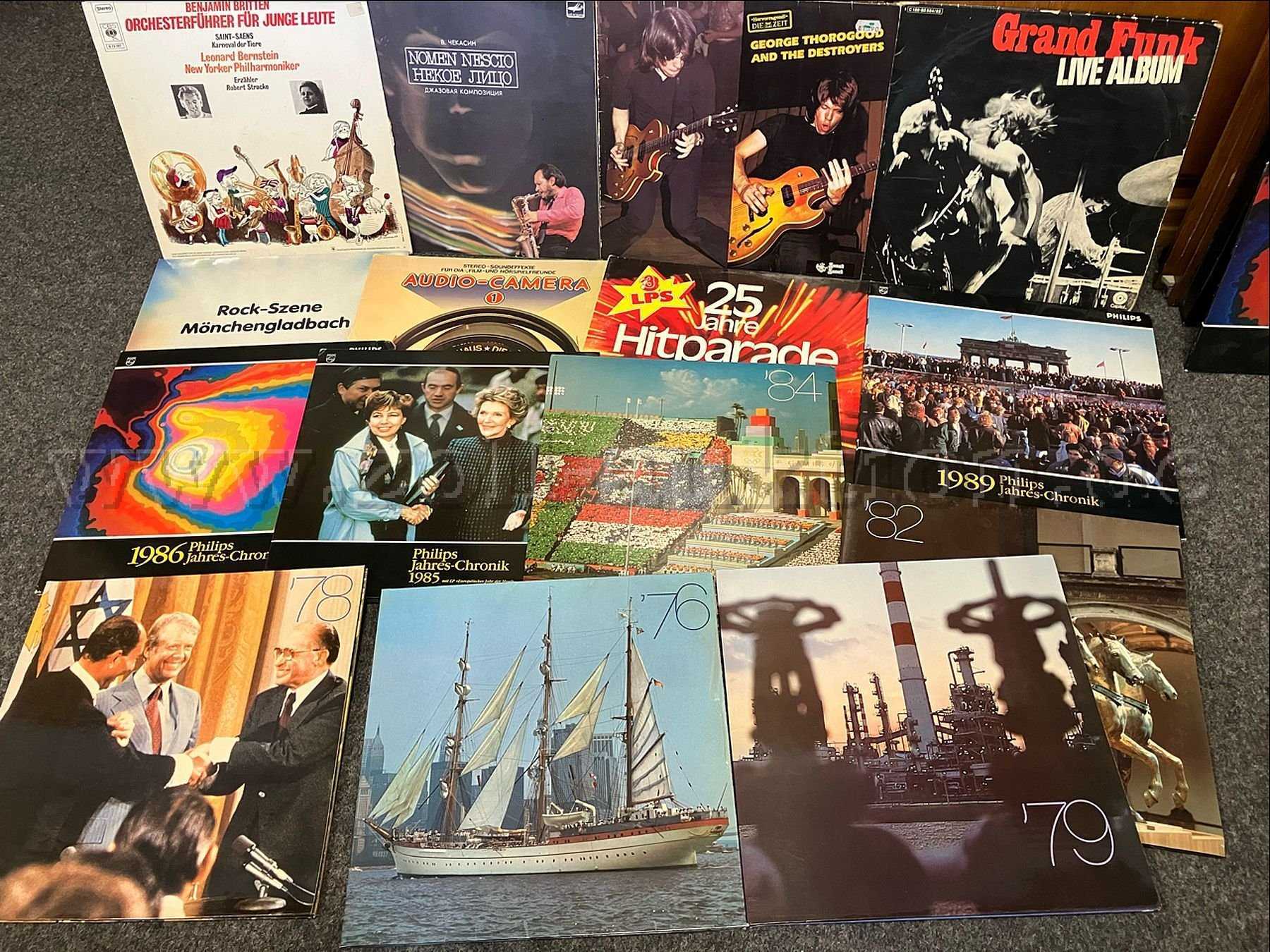 Wertmindernde Faktoren: Die jeweiligen Covers sowie die meisten der Tonträger sind handschriftlich bzw. mit dem Schulstempel als Eigentumsnachweis versehen. Die Mehrzahl der Frontcovers sind an den Kanten ansatzweise verschürft, teilweise angeknickt bzw. partiell eingerissen. Besondere Hinweise: Gegenstand der Auktion ist ausschließlich der hier jeweils beschriebene Artikel. Auf den beigefügten Fotos möglichweise weitere erkennbare Artikel sind nicht Gegenstand dieser Auktion!