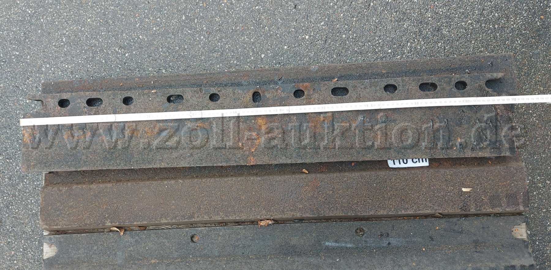 Die Schürfleisten weisen aufgrund der Lagerung Korrosion, Verschmutzungen, Kratzer und Lackschäden auf.