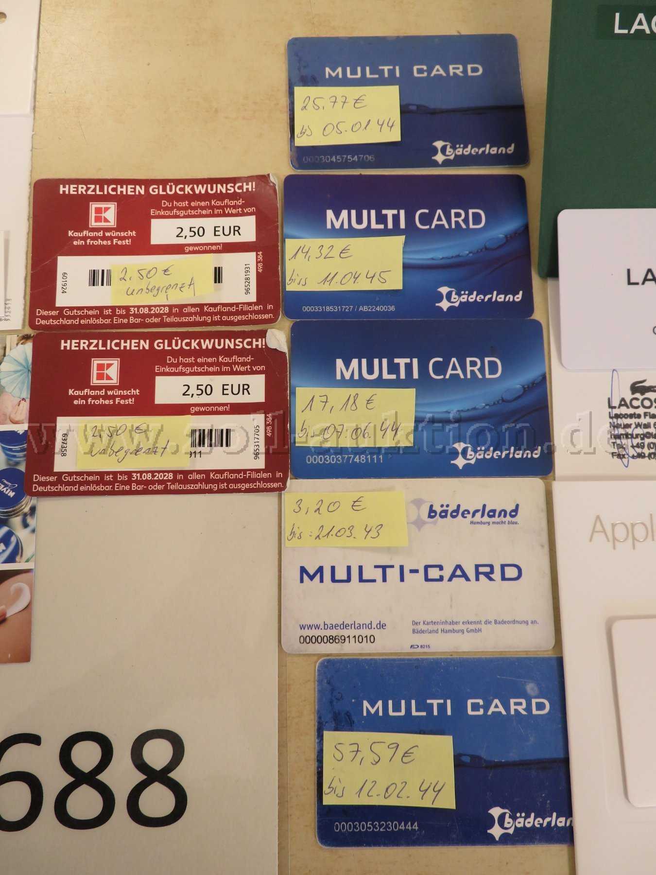- Alle Gutscheinkarten weisen Kratzer und Dreckspuren auf