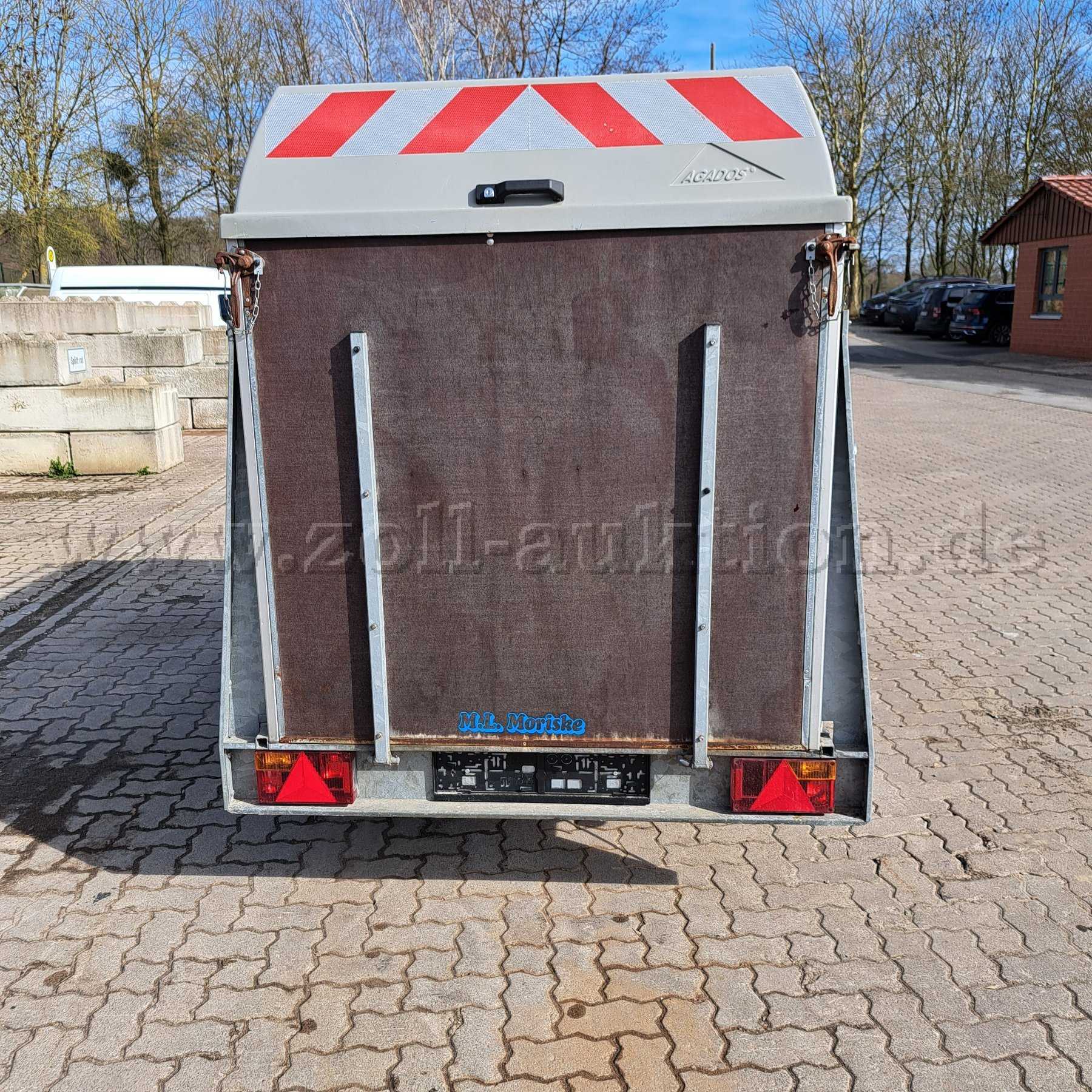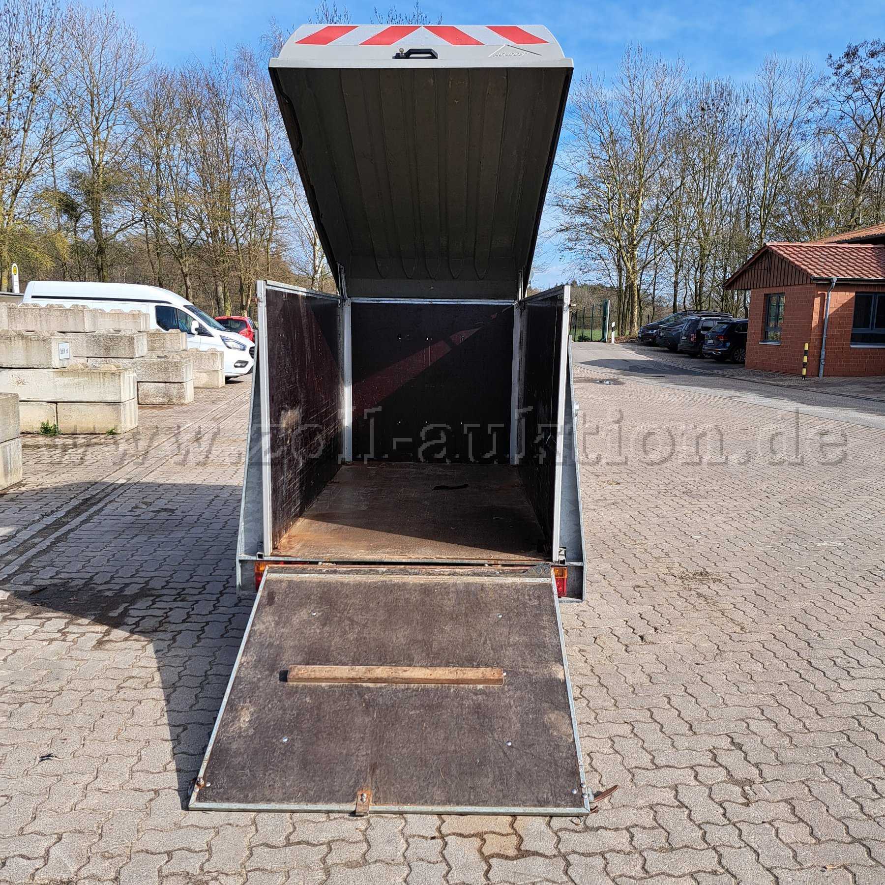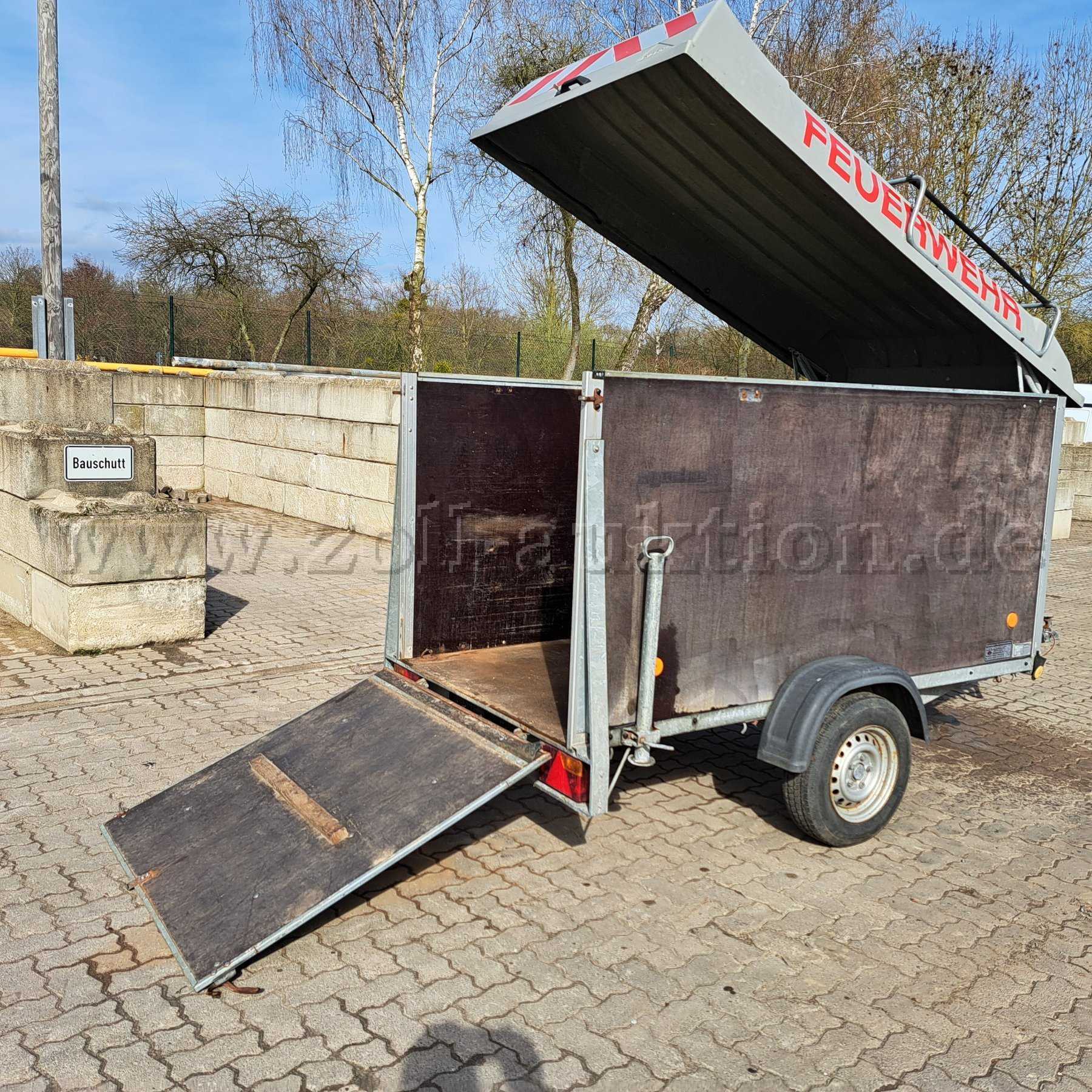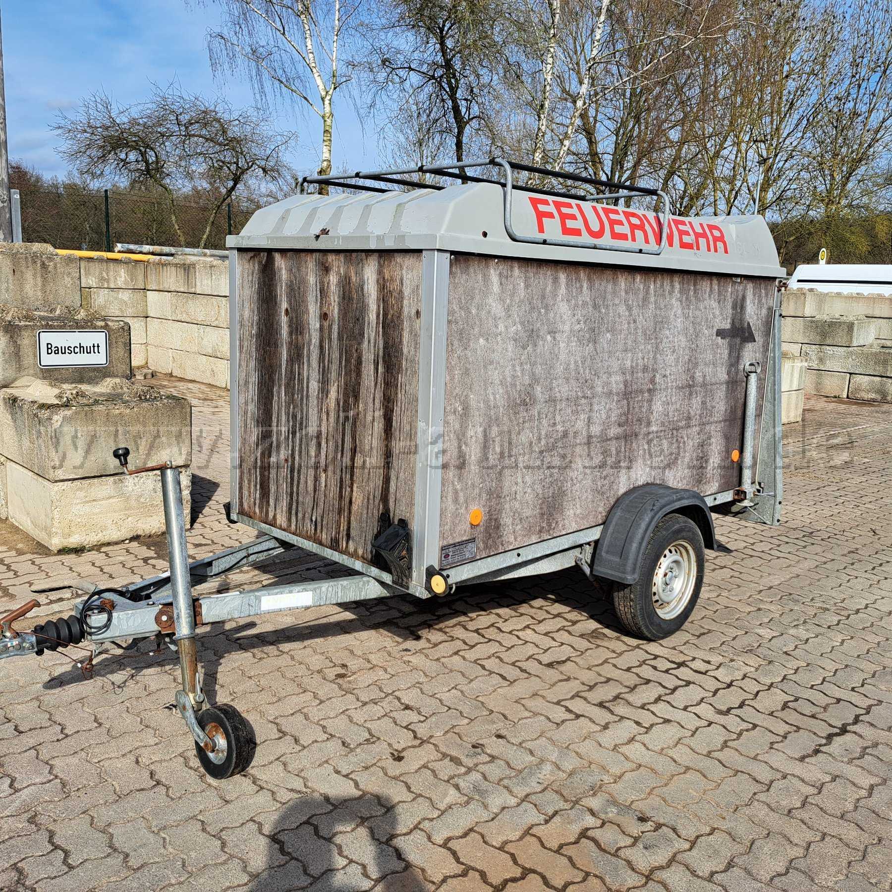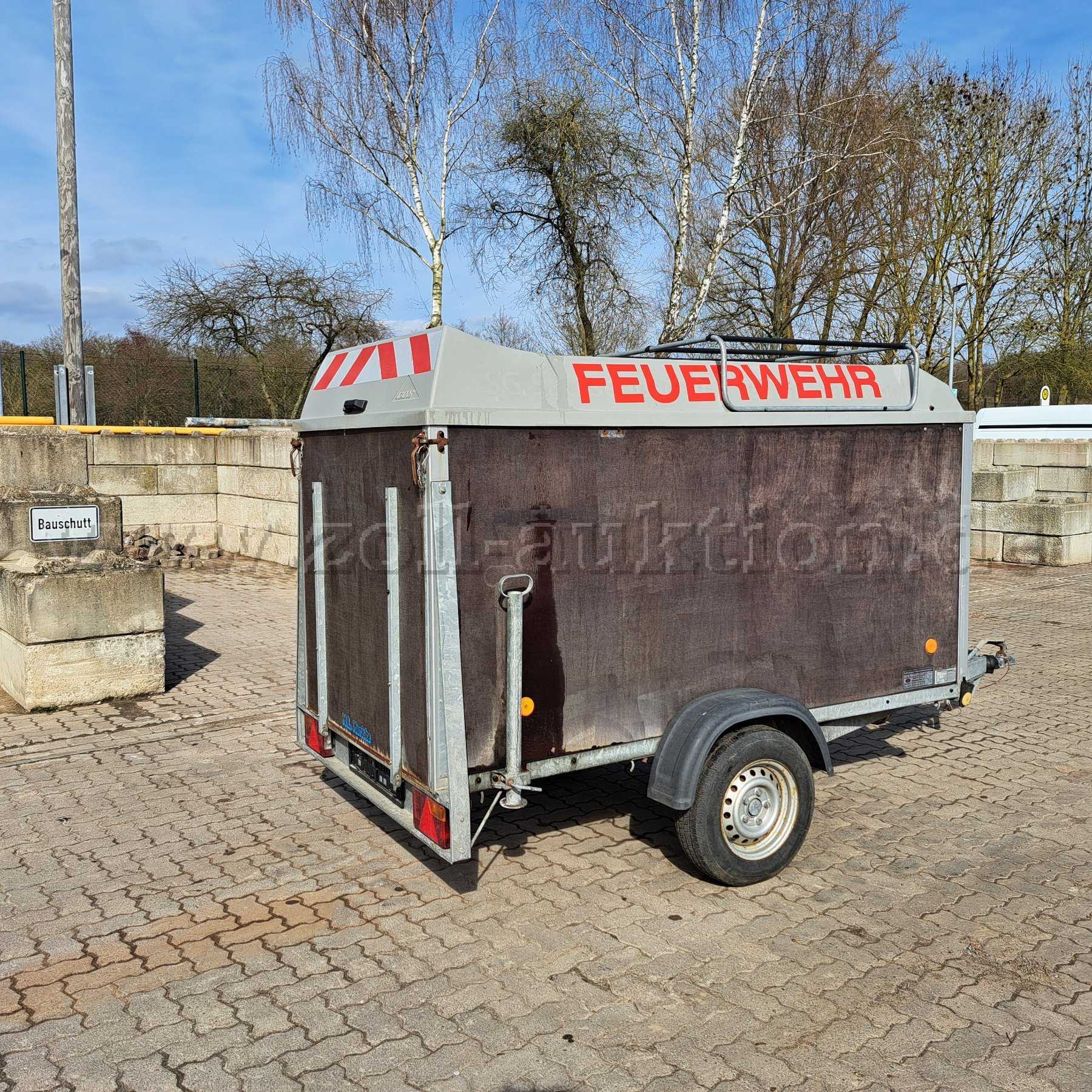 Bei dem Anhänger handelt es sich um einen geschlossenen Kofferanhänger, der in letzter Funktion bei der freiwilligen Feuerwehr im Hygienebereich verwendet worden ist. Die Holzwände sind außen oberflächig stark angegriffen. Der Anhänger hat keine gültige TÜV-Untersuchungen und wird aufgrund der festgestellten Mängel ausdrücklich als defekt versteigert. Gewährleistung wird ausdrücklich ausgeschlossen. Wesentliche Mängel sind u.a. :