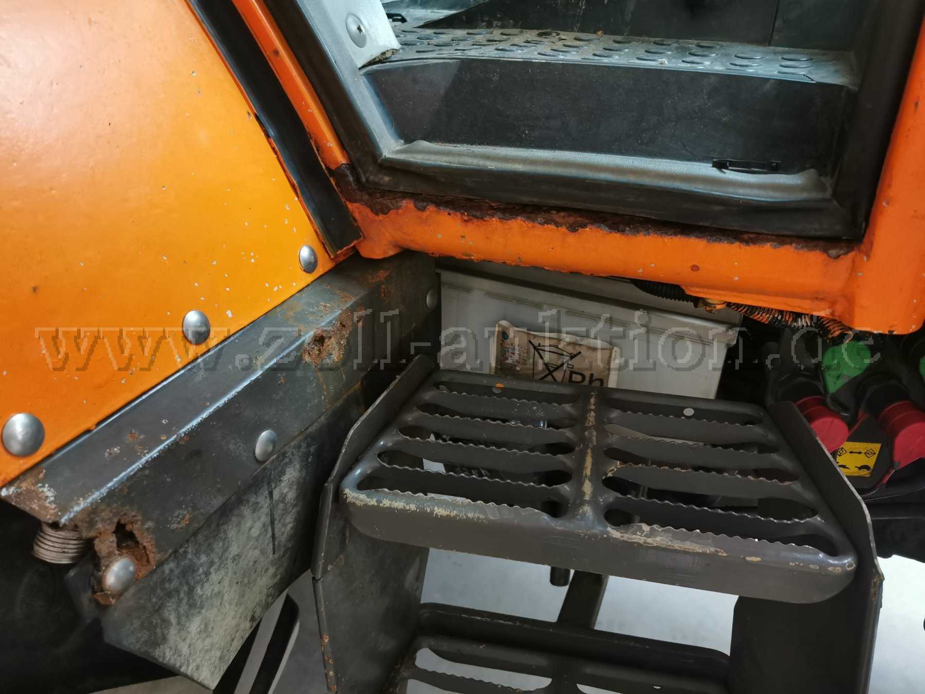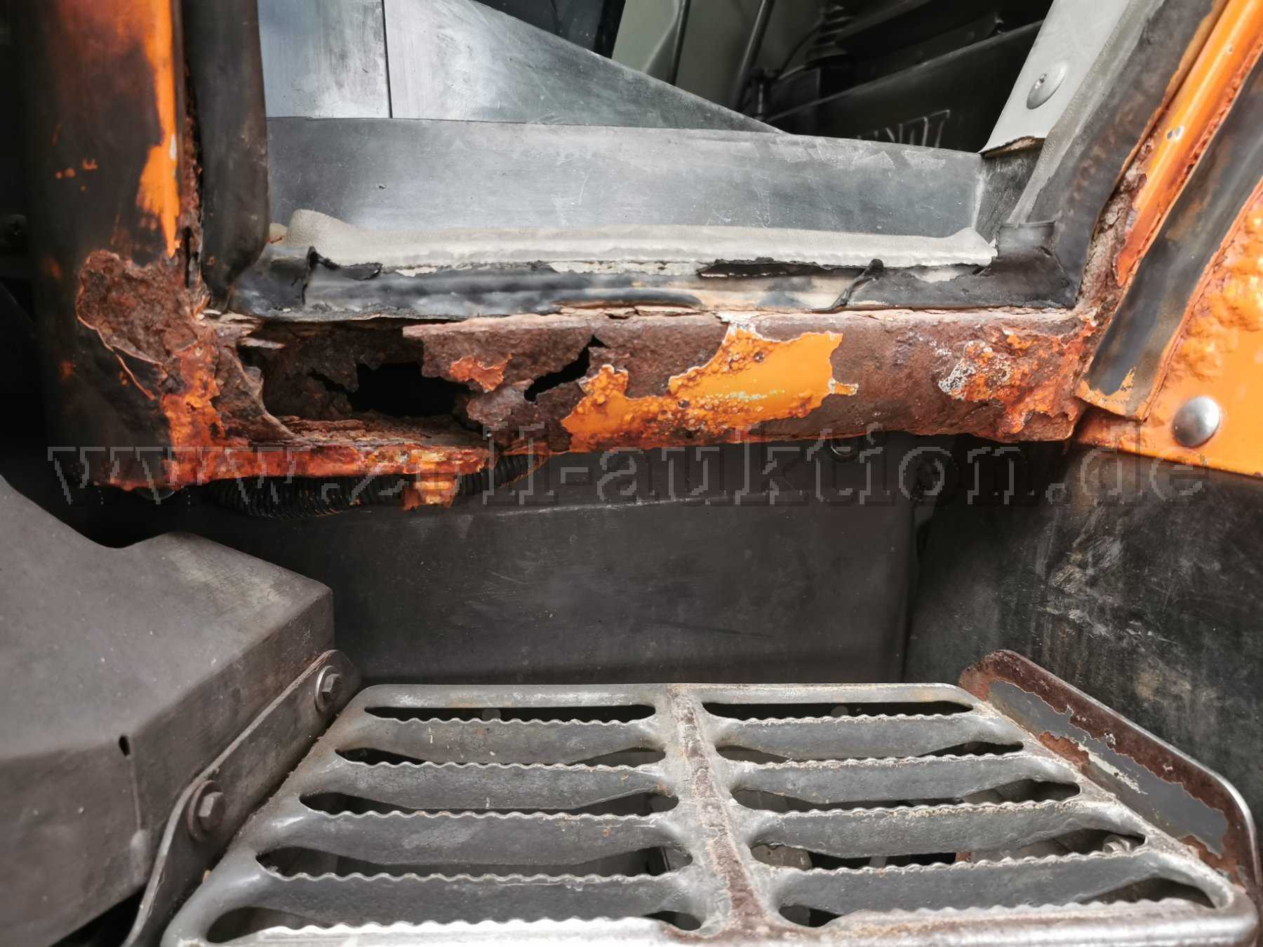 Fahrzeug und Anbauteile weisen nutzungsbedingte Kratzer und Beschädigungen sowie altersbedingte Rost- und Gebrauchsspuren auf, wie z. B. Rost, Lackabsplitterungen, kleine Beulen, Dellen, Verschmutzungen, Lack und Kunststoffteile verblichen.