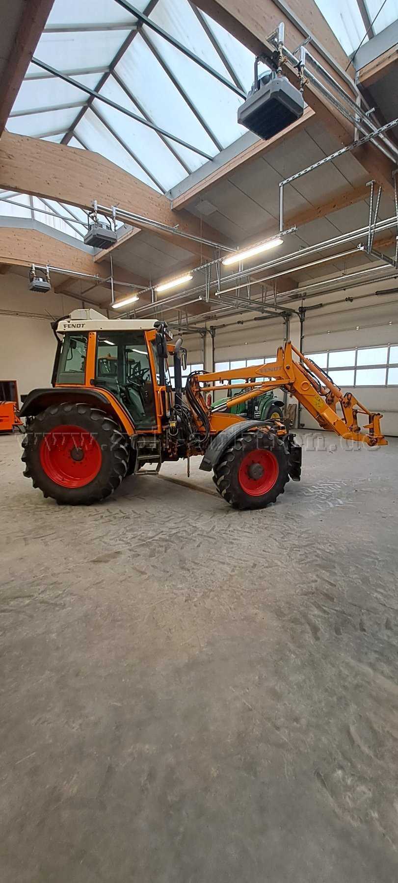 Durckluftbremse, Klimaanlage, Standheizung, Fronlader (Original Fendt Industriefrontlader - parallelführend), Heckkraftheber Kat. 3, Frontzapfwelle, Heckzapfwelle (540/750/1000), Kommunalanbauplatte vorne, Fahrersitz luftgefedert, Beifahrersitz, Arbeitsscheinwerfer (2x vorne, 2x hinten), Fahrscheinwerfer (2x unten, 2x oben am Kabinendach), Zwischenachsgräder hydraulisch, ausstellbare Heck- und Frontscheibe, Anhängevorrichtung höhenverstellbar (Verriegelung mit Bolzen), Radio, Rundumleuchte (1x), Zusatzsteuergeräte (3x Heck DW, 2x Front DW), druckloser Rücklauf Front/Heck, Zwischenachssteuergerät für Frontlader