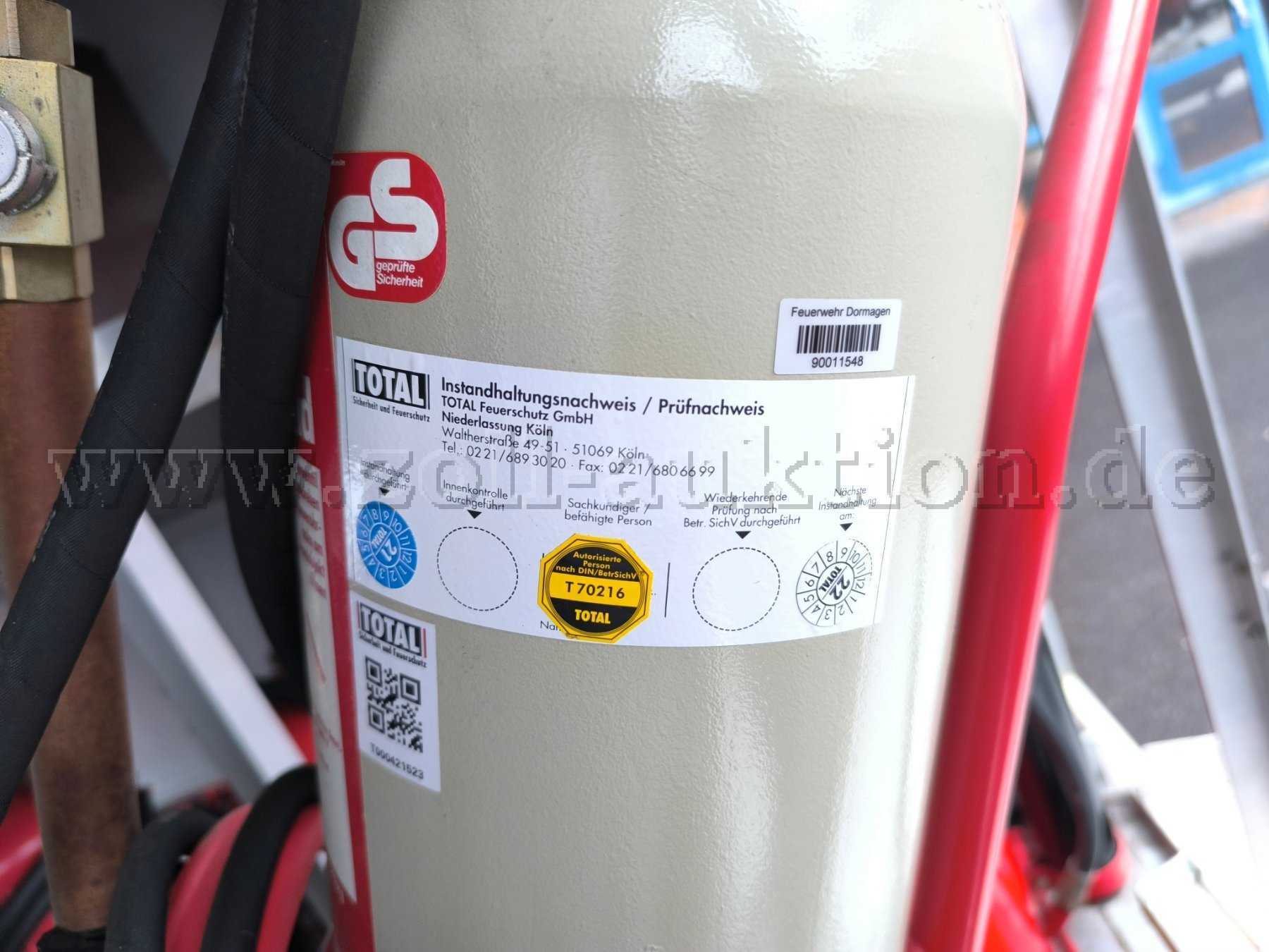 Das Fahrzeug wird mit der Pulverlöschanlage PLA 2000 (befüllt) , 2 fahrbaren 50 kg-Feuerlöschern PM50 (befüllt), 2 fahrbaren 50 kg-Feuerlöschern P50 (befüllt) sowie 2 Kohlendioxidlöscher K30 mit 30kg CO² (befüllt) versteigert. Wir übernehmen keine Gewähr für den Betriebsfähigkeit der Löscheinrichtungen.
