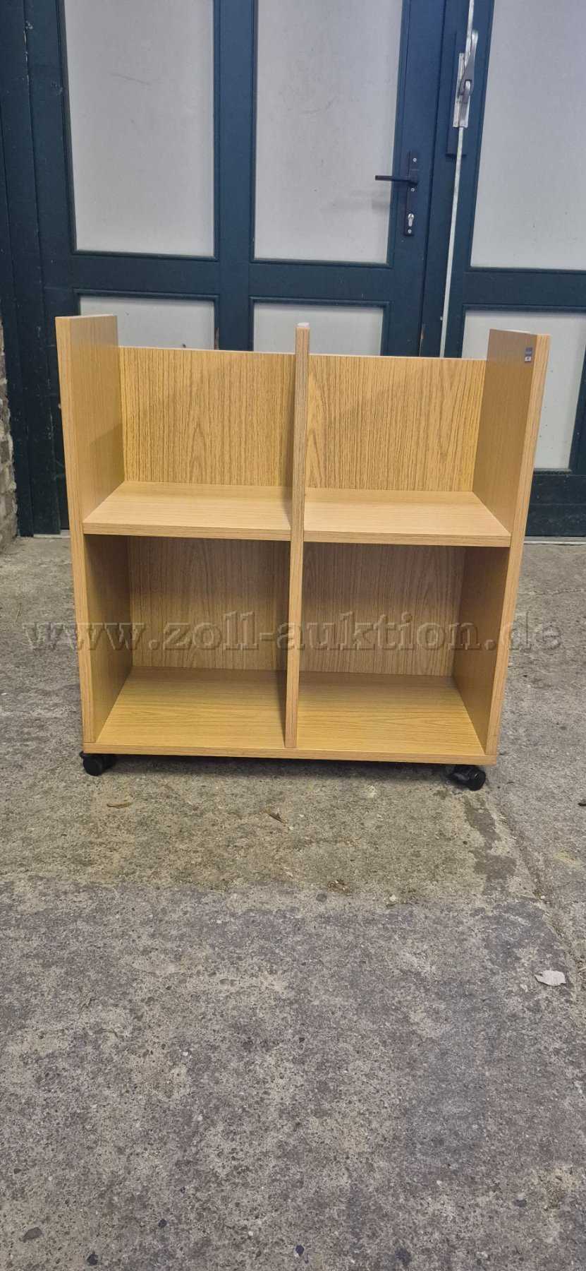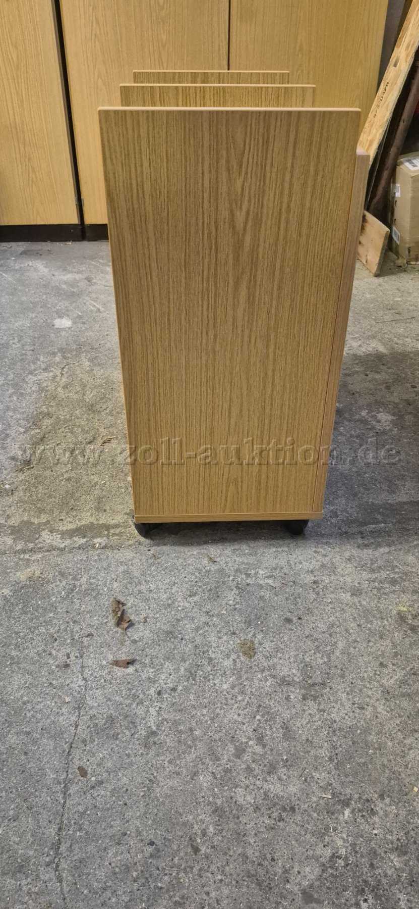Gebrauchter, offener, Aktenbock eines unbekannten Herstellers in einer Holzoptik.