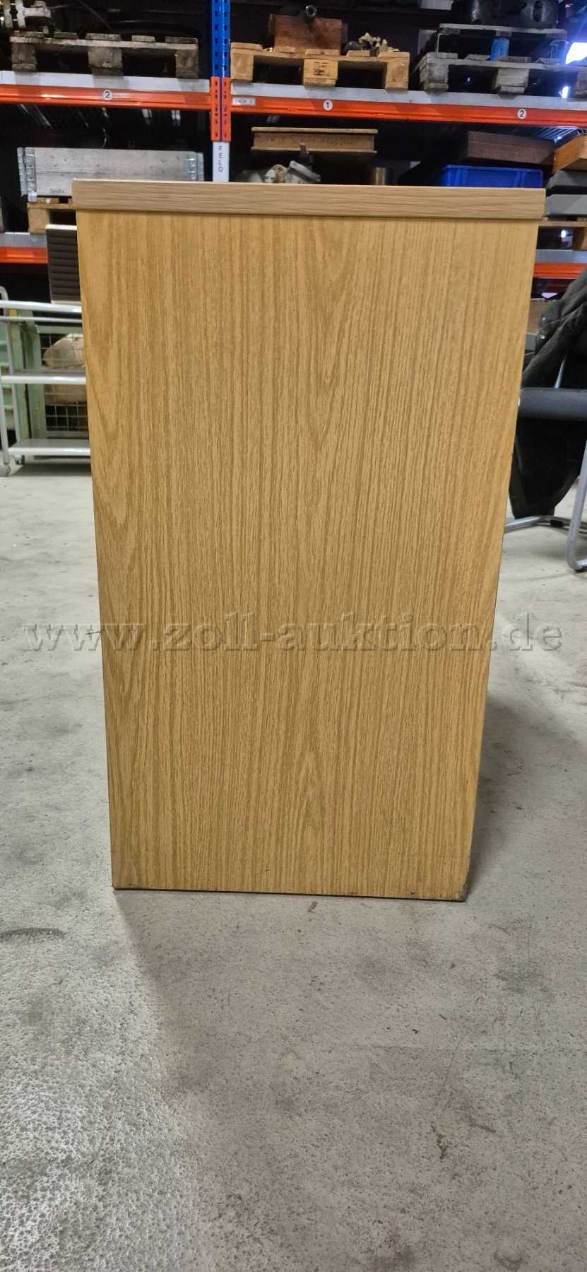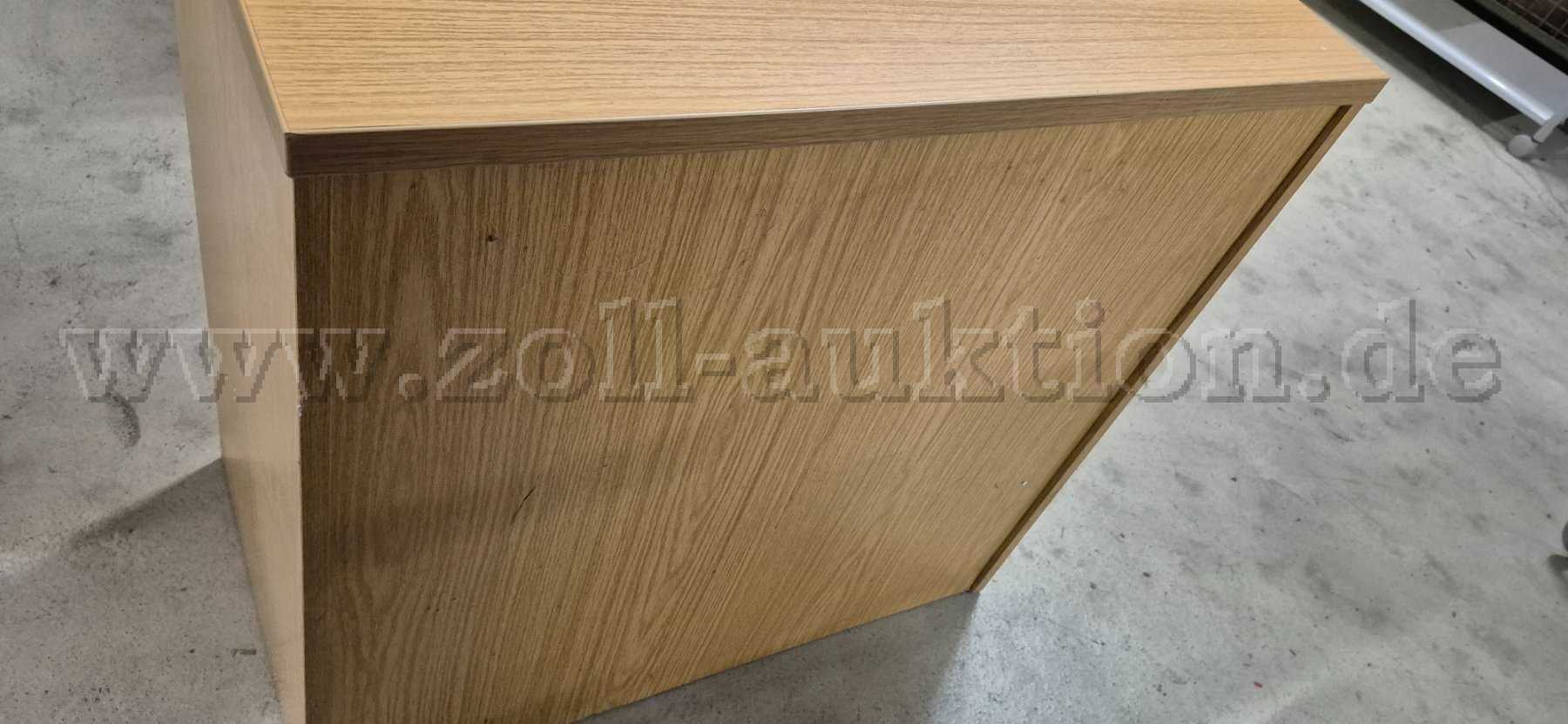 Gebrauchter Aktenbock eines unbekannten Herstellers in einer Holzoptik.