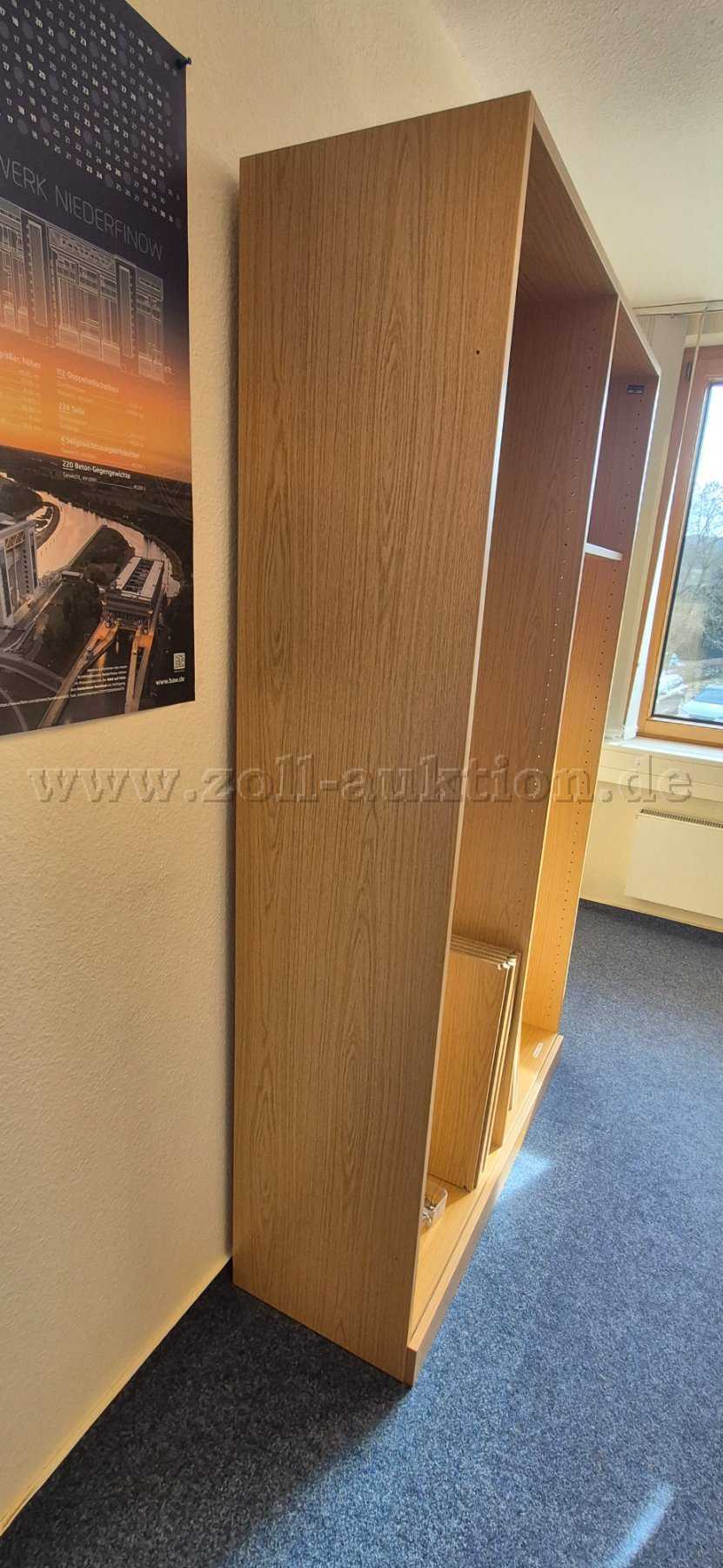 Gebrauchtes Aktenregal eines unbekannten Herstellers in einer Holzoptik.
