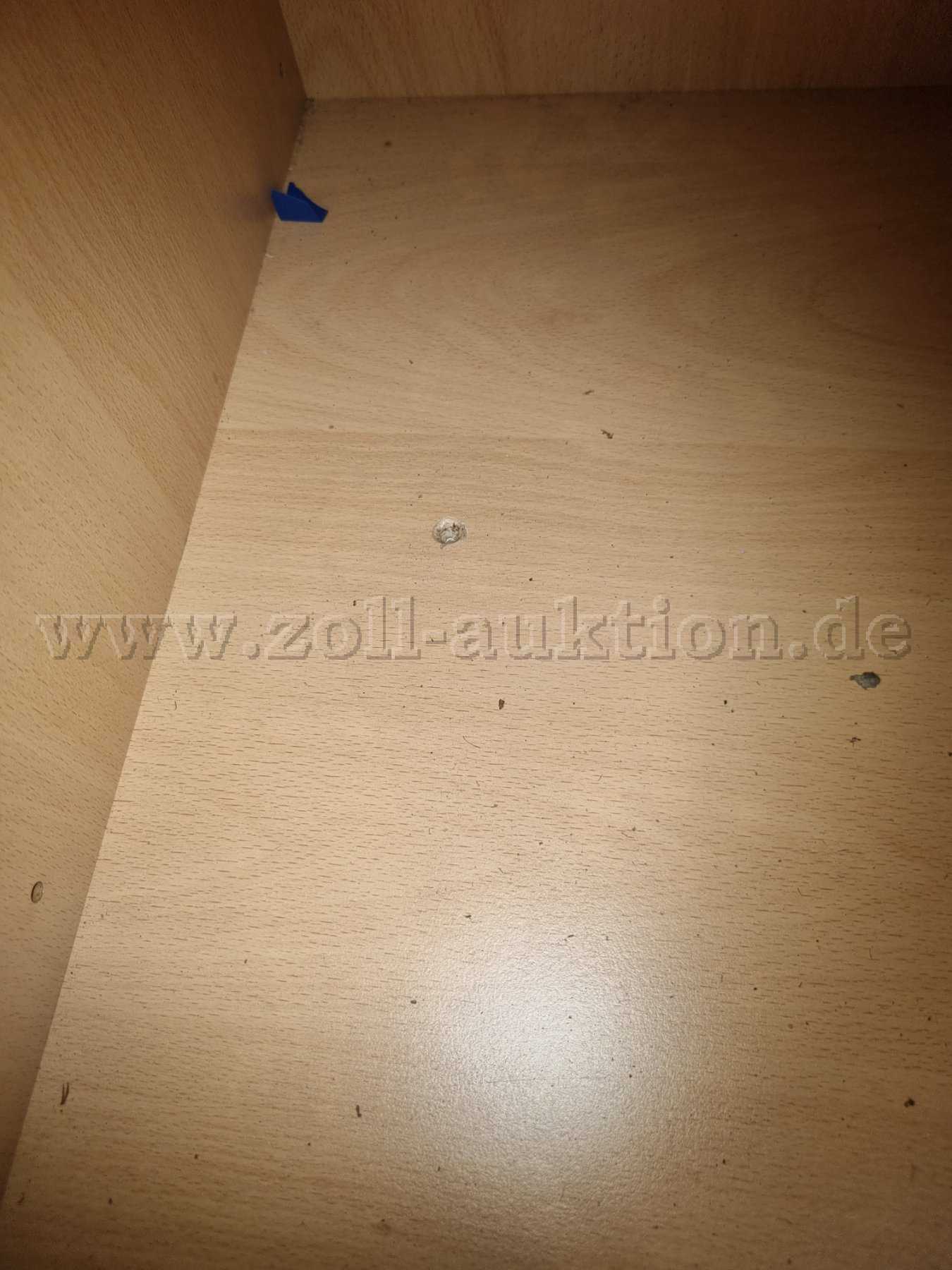 - Gebrauchsspuren in Form von diversen partiellen Abschürfungen / Kratzern / Verunreinigungen an Oberflächen. Ausbleichungen durch Sonneneinstrahlung. An der Seite des Aktenregals sind tiefergehende Kratzer / Abschürfungen vorhanden sowie Schraublöcher an den Seiten.