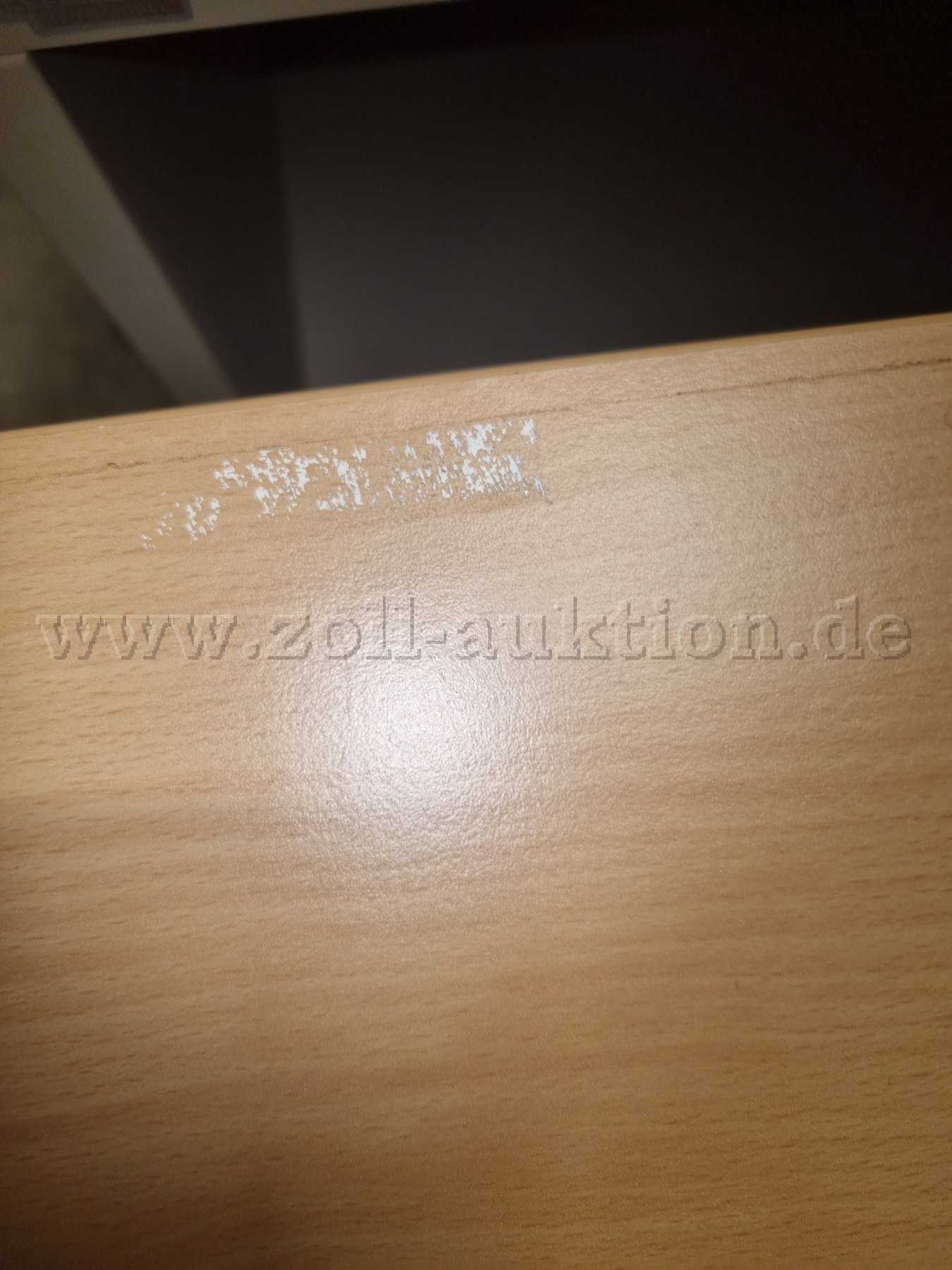 - Gebrauchsspuren in Form von diversen partiellen Abschürfungen / Kratzern / Verunreinigungen an Oberflächen. Ausbleichungen durch Sonneneinstrahlung. An der Seite des Aktenregals sind tiefergehende Kratzer / Abschürfungen vorhanden sowie Schraublöcher an den Seiten.