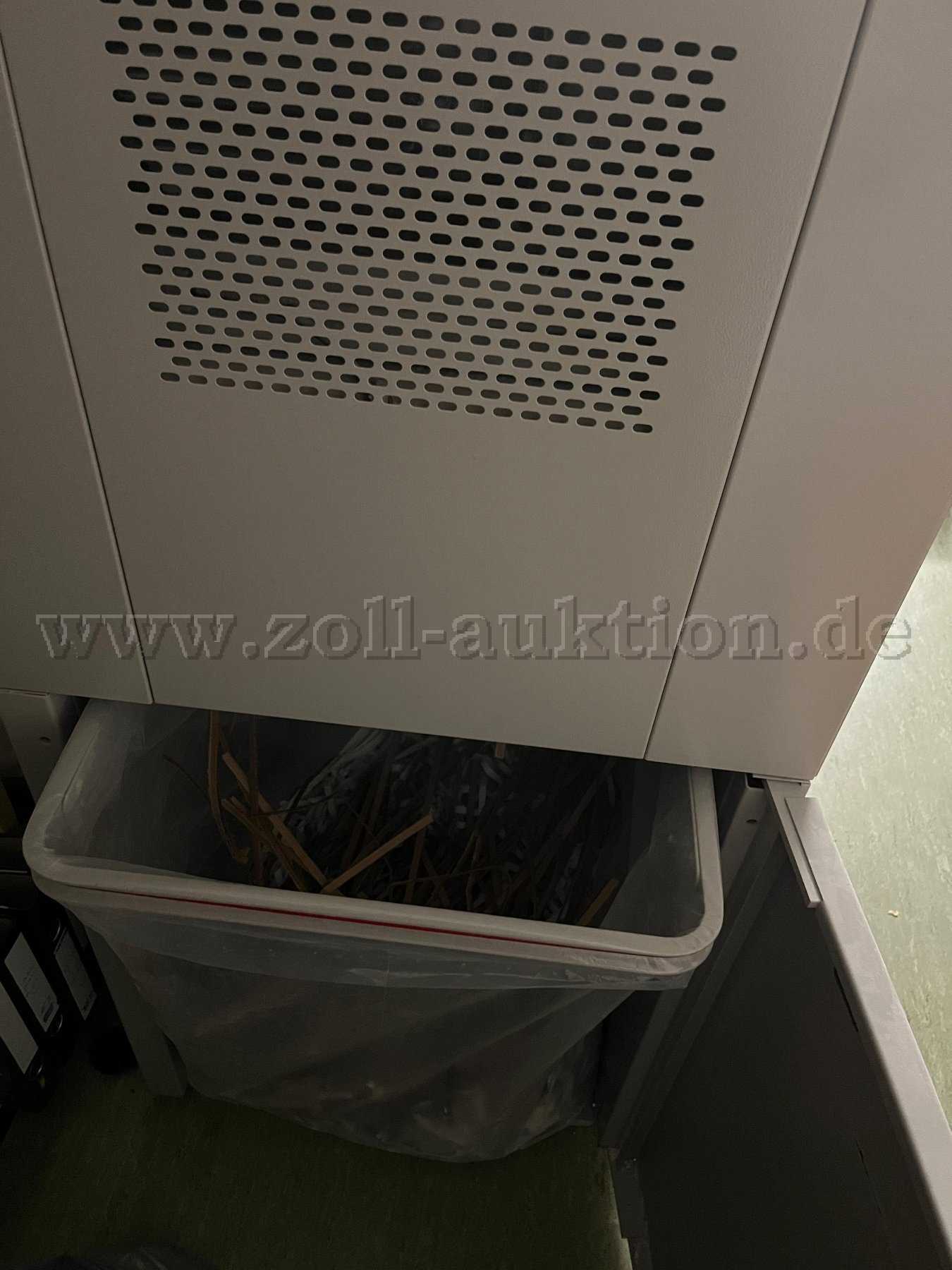 Der Ideal 4107 ist ein professioneller Großmengen-Aktenvernichter, der für den Einsatz in Behörden, Archiven und Unternehmen konzipiert wurde. Das Gerät verfügt über einen Partikelschnitt (6 x 50 mm) und entspricht der Sicherheitsstufe P-3 nach DIN 66399. Es eignet sich für die Vernichtung großer Mengen an vertraulichen Dokumenten, Büroklammern und Kreditkarten. Der Aktenvernichter ist mit einem Zuführtisch und Transportband ausgestattet, was eine effiziente und ergonomische Bedienung ermöglicht. Das Gerät wird ohne Batterien und Speichermedien versteigert.