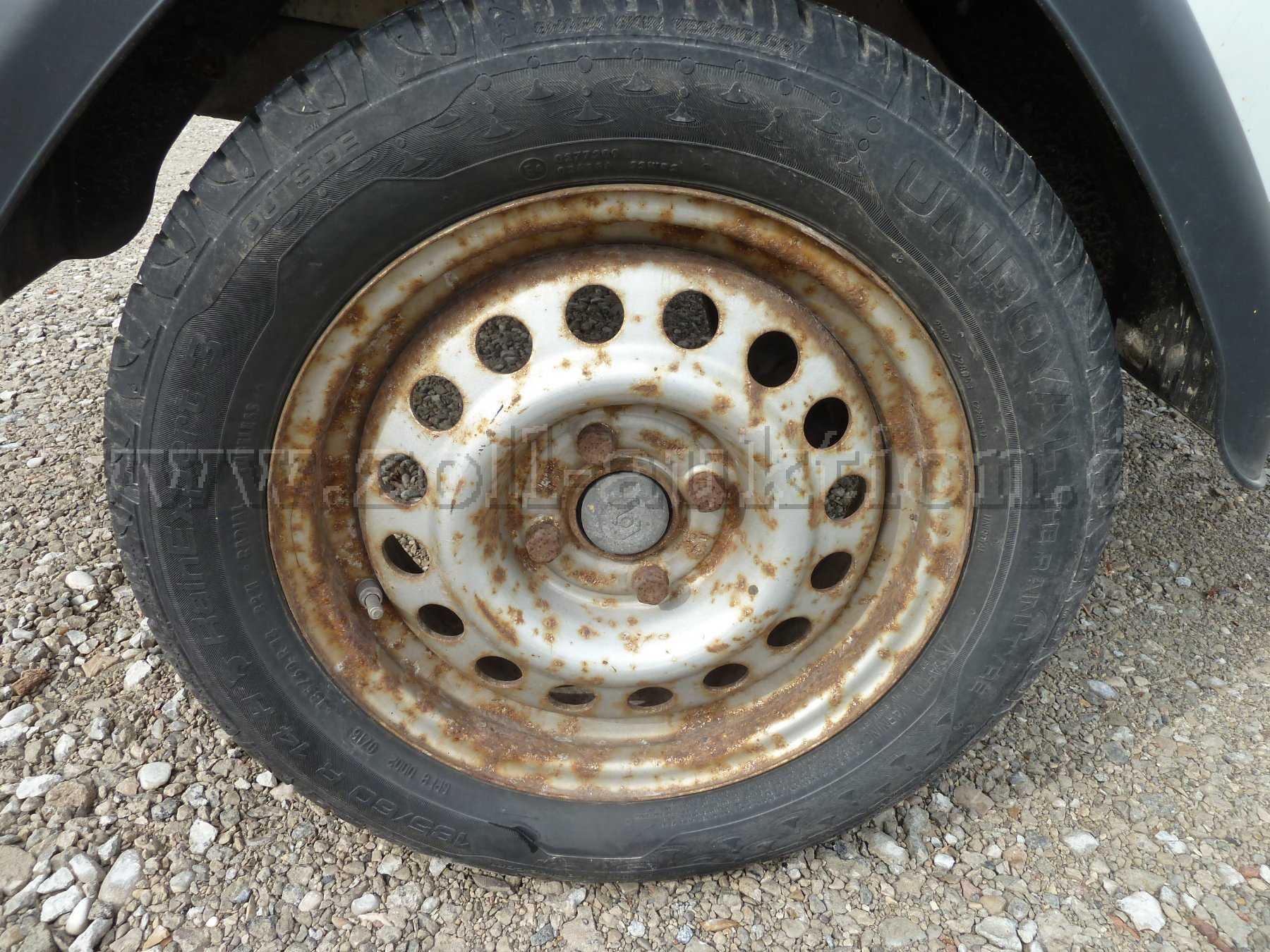 Boden Riffelblech Schrauben vorne abgerostet, Felgen außen angerostet, Rahmen aussen angerostet