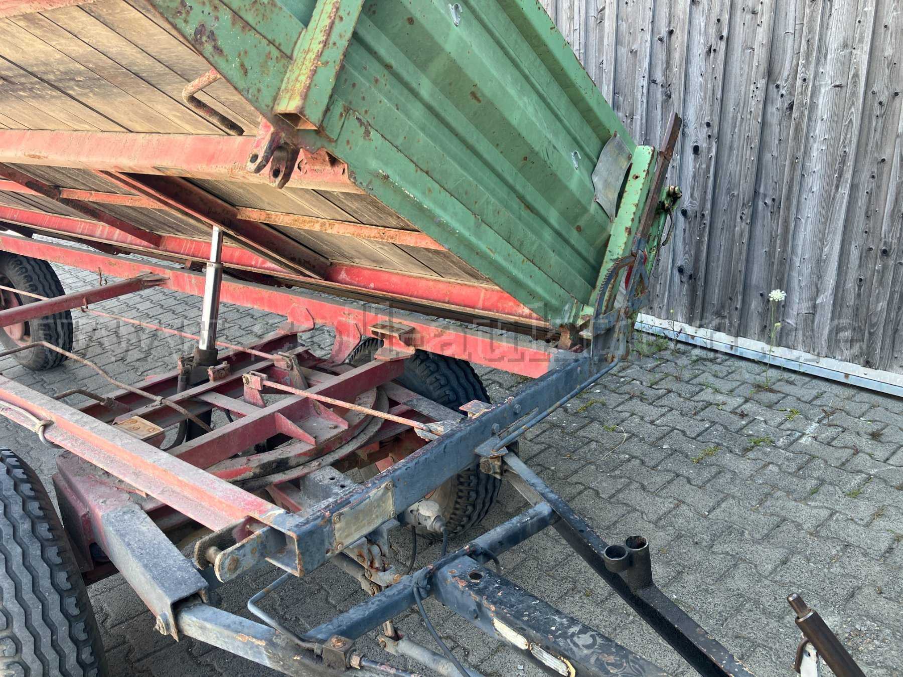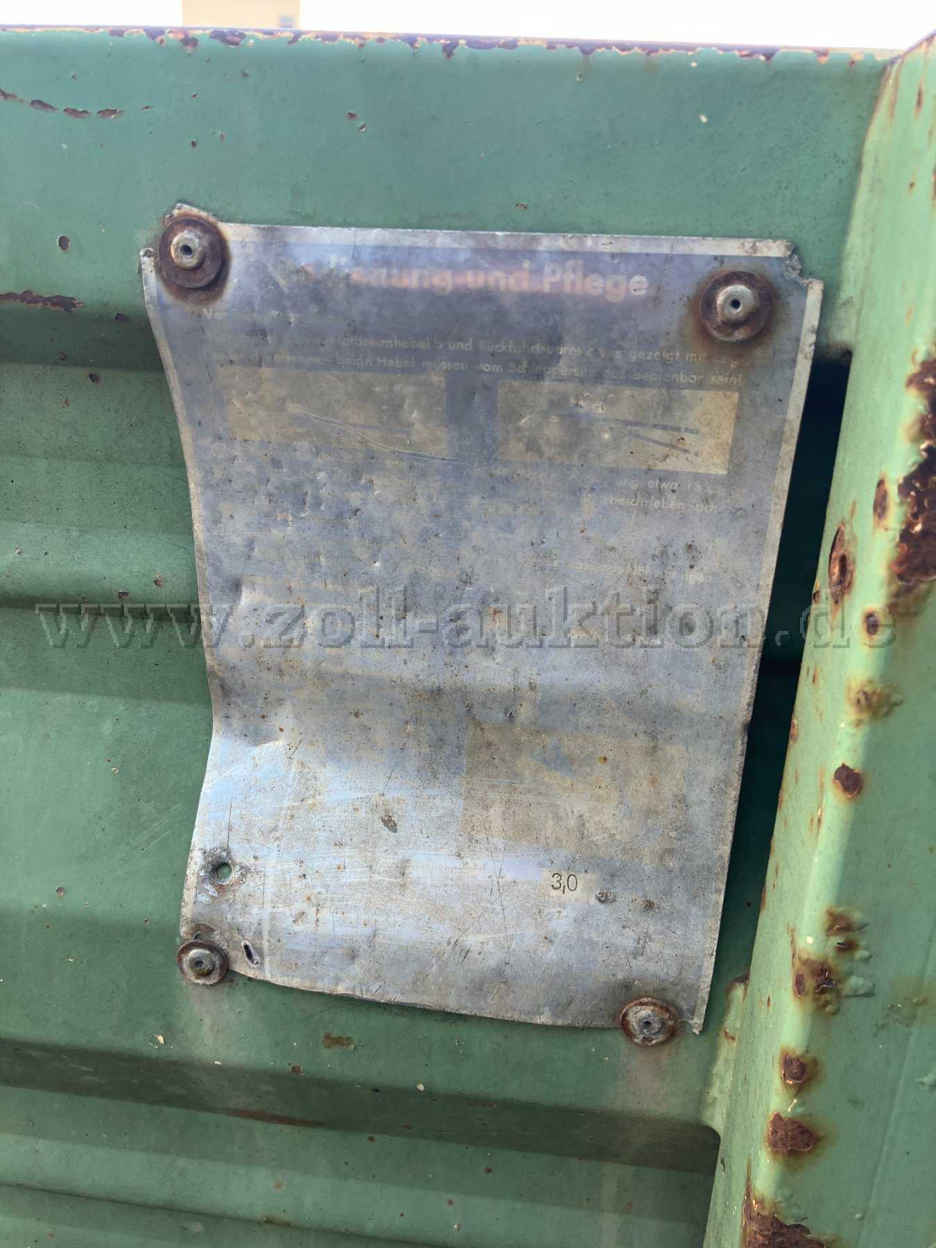 Der Anhänger befindet sich in einem dem Alter entsprechenden Zustand und weist entsprechende Korrosionsspuren und Abnutzungsspuren auf. Die ursprünglichen Holz-Seitenwände wurden durch welche aus Metall ersetzt und ist hydraulisch kippbar.