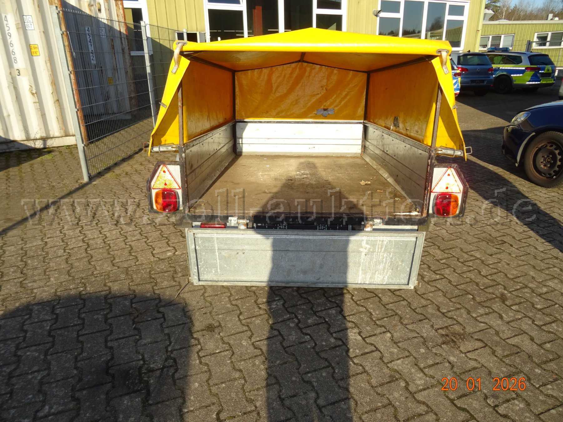 Zur Versteigerung steht ein ausgesonderter und bedingt fahrbereiter Anhänger.