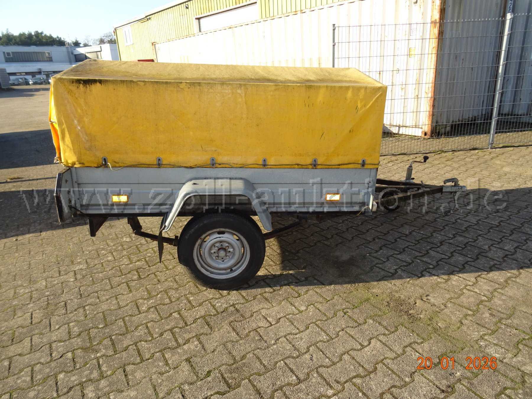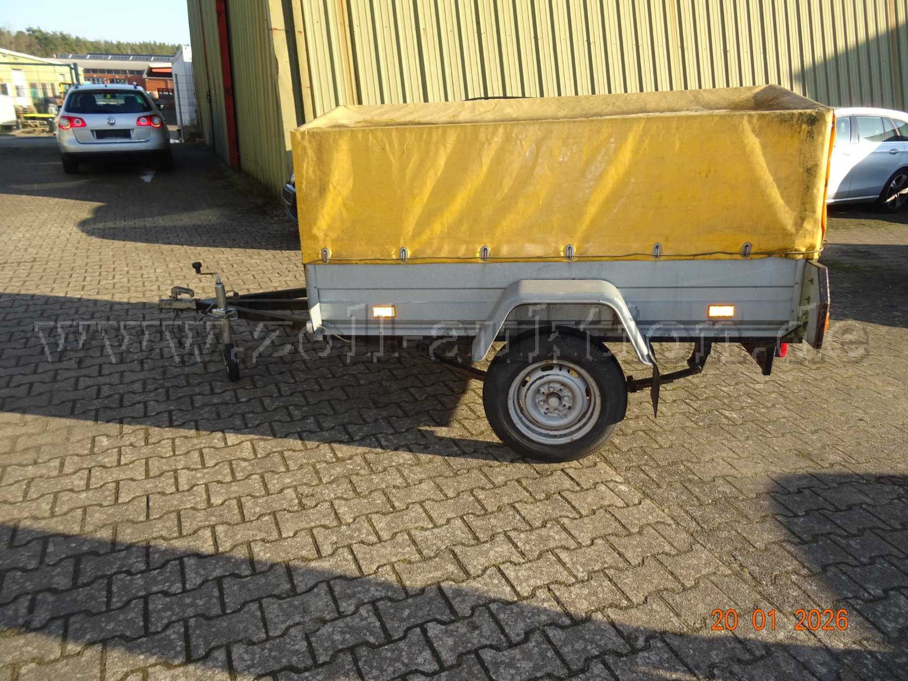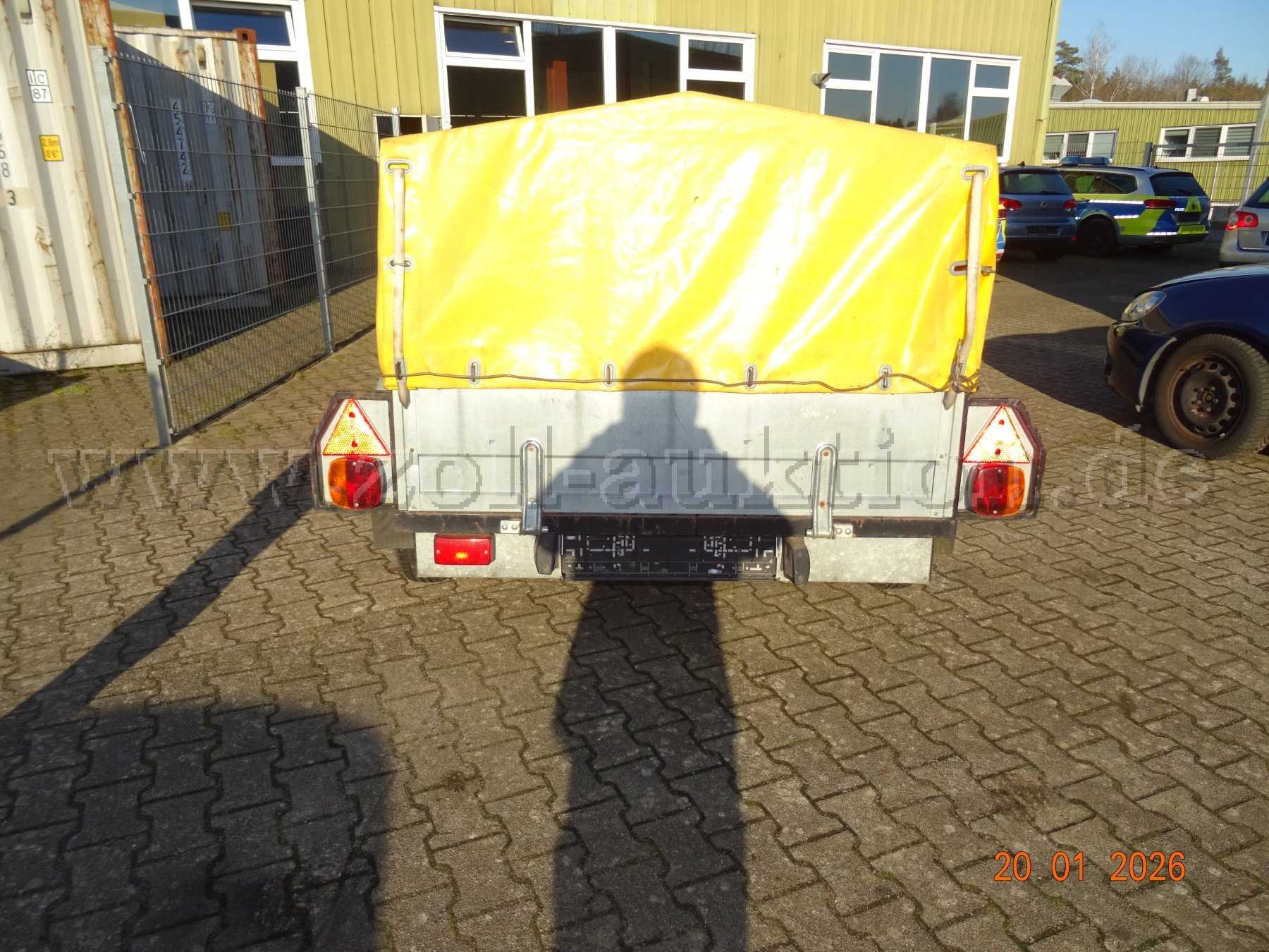Sie bieten auf ein Fahrzeug in der Kategorie Anhänger mit Kugelkupplung. Es muss davon ausgegangen werden, dass das Fahrzeug bei Abholung nicht betriebsbereit und nicht verkehrssicher ist. Das Fahrzeug ist im Freien abgestellt, der Anhänger kann deshalb verschmutzt sein.