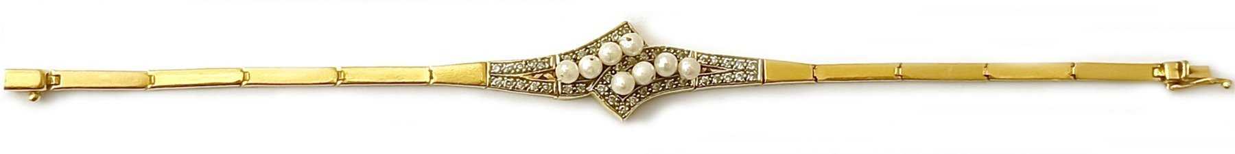 1 Armband in 916/f Gelbgold mit Zuchtperlen