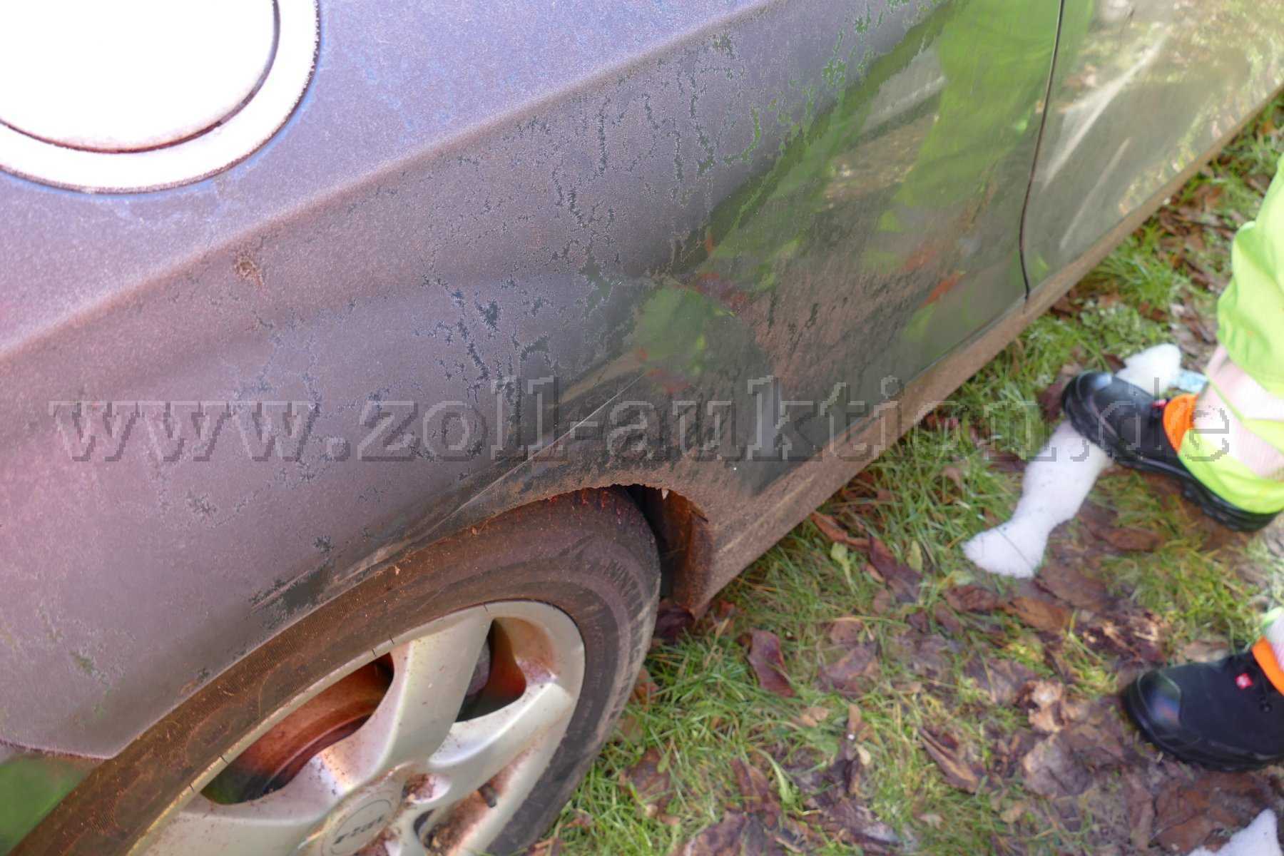 Das Fahrzeug weist altersbedingte Gebrauchs- und Abnutzungsspuren auf. Das Fahrzeug hat überall kleinere Lackschäden und Dellen. Das Fahrzeug ist sehr stark verdreckt.