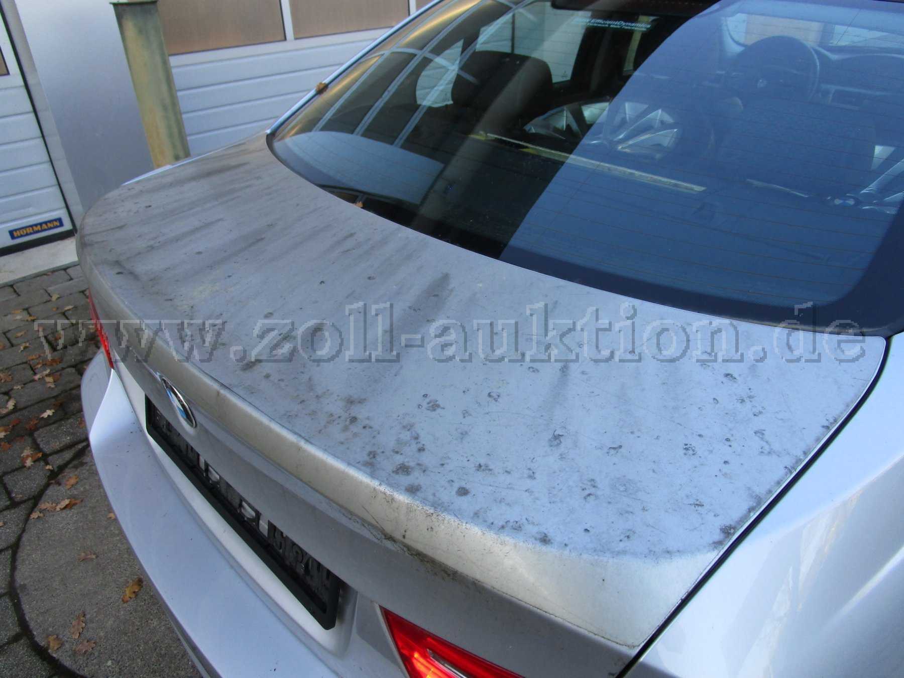Kotflügel HL/HR Vielzahl Dellen; Kofferraumdeckel mit Folie beklebt / starke Verschmutzung; Dach mit Zubehörantenne (vermutl. ohne Funktion).