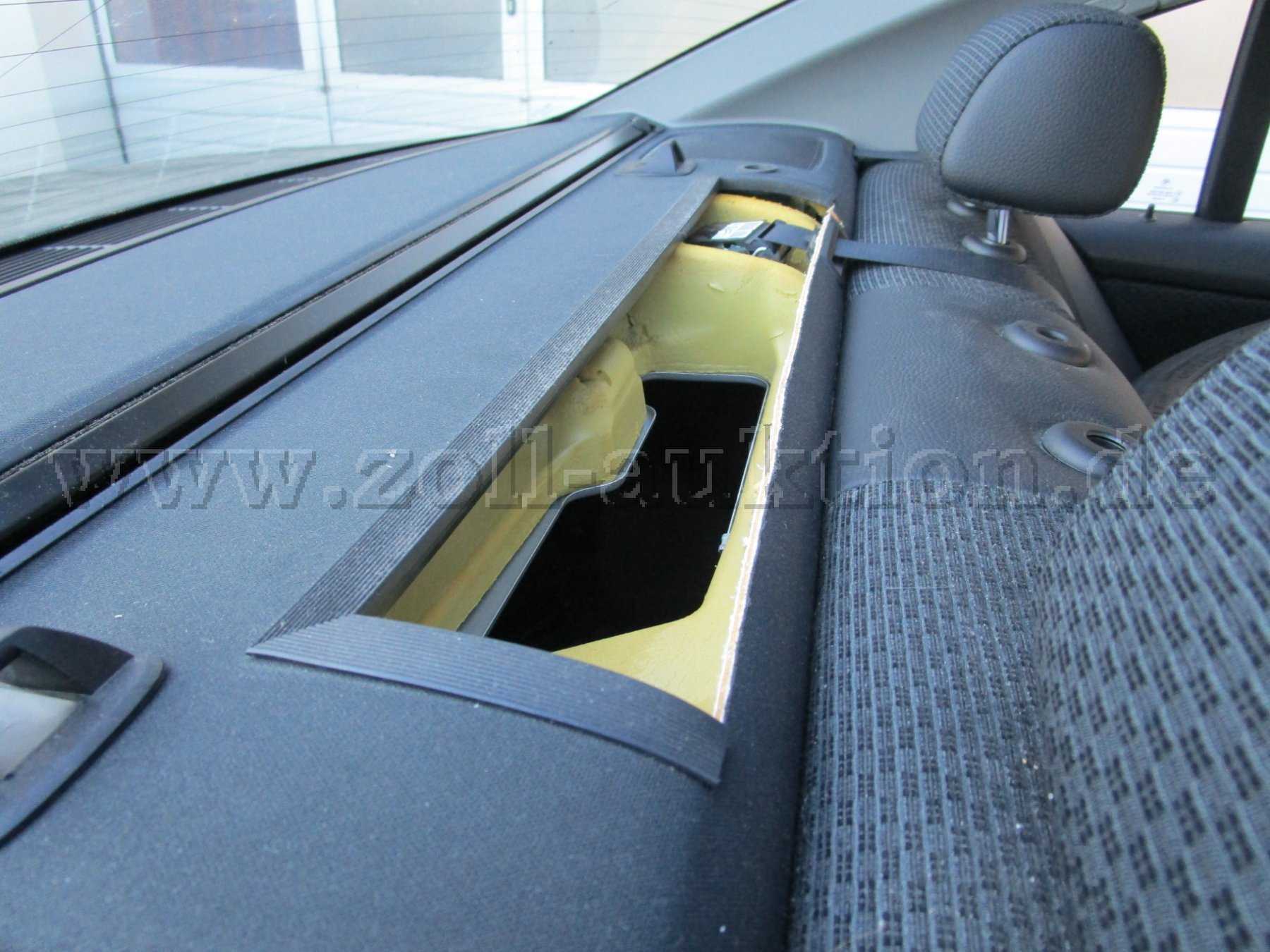 Aschenbecherfach der Mittelkonsole fehlt; Kontrollbeleuchtung der Schaltkulisse ohne Funktion; BF-Sonnenblende beschädigt/Klebereste; Hutablage große Öffnung/beschädigt;