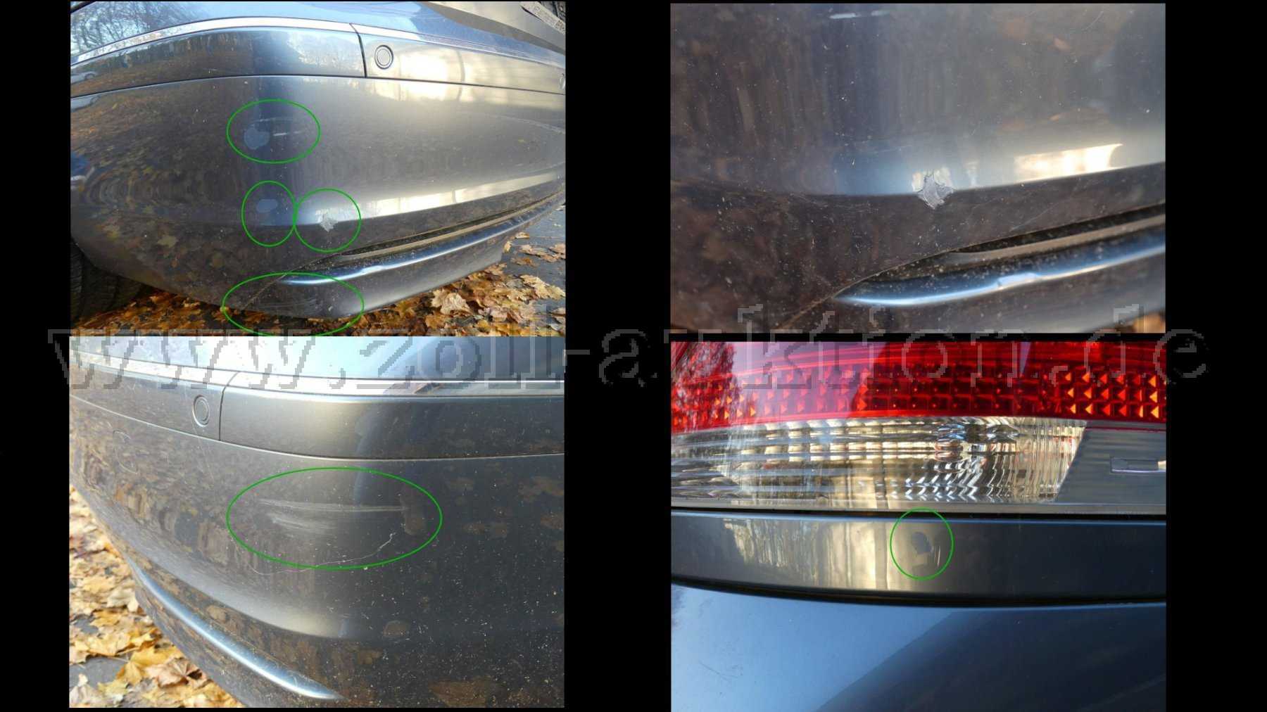 - Lackbeschädigungen am Heckstoßfänger links- und rechtsseitig, lackieren mit Lackaufbau;