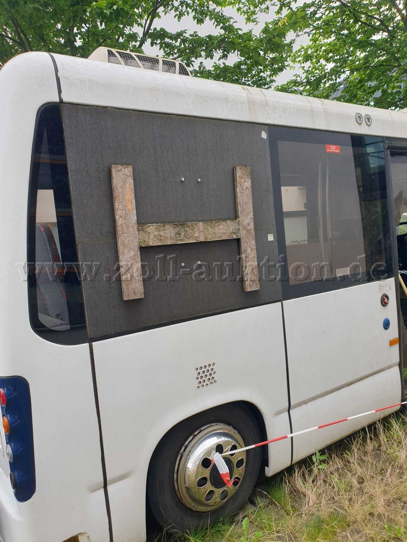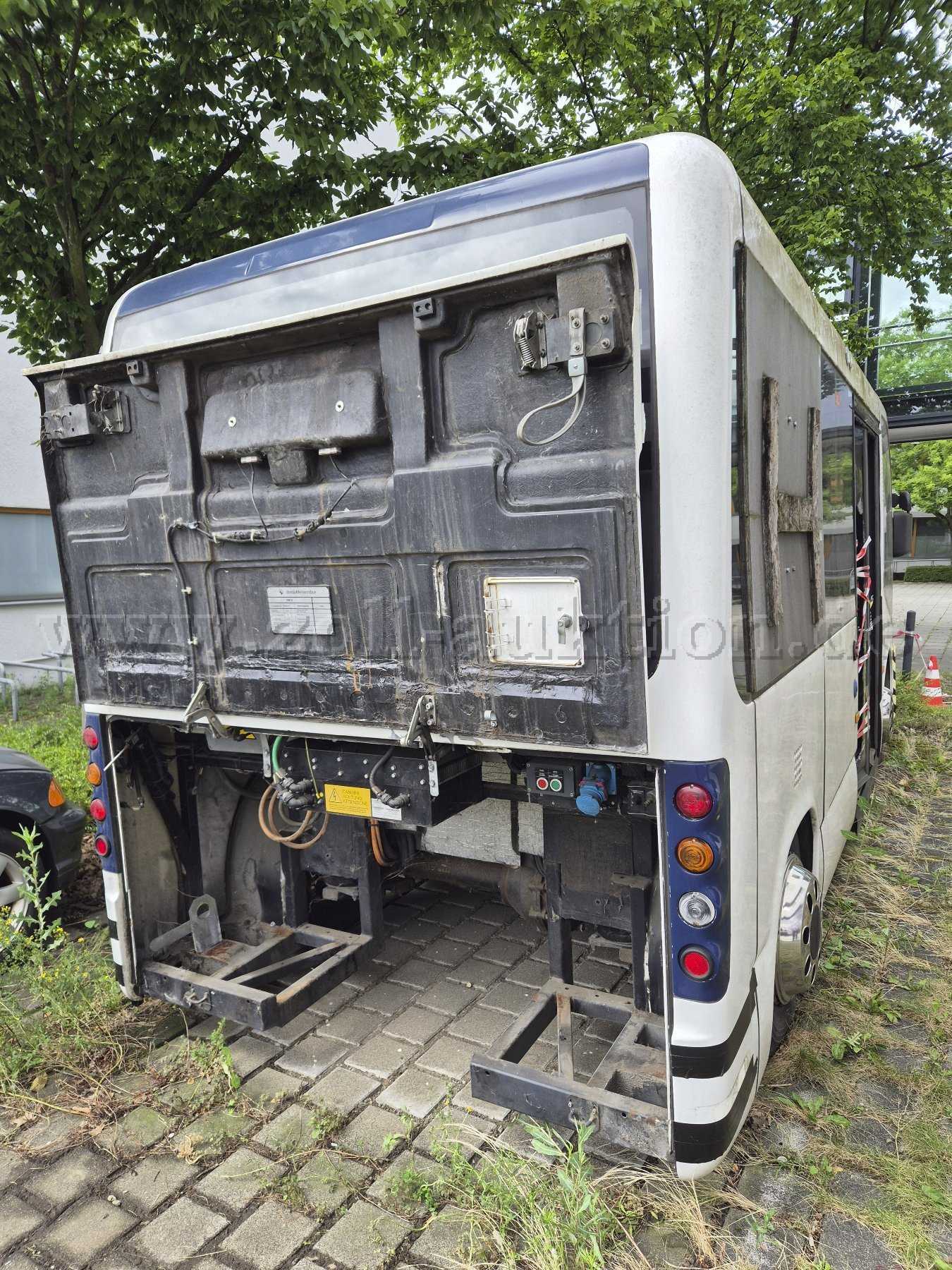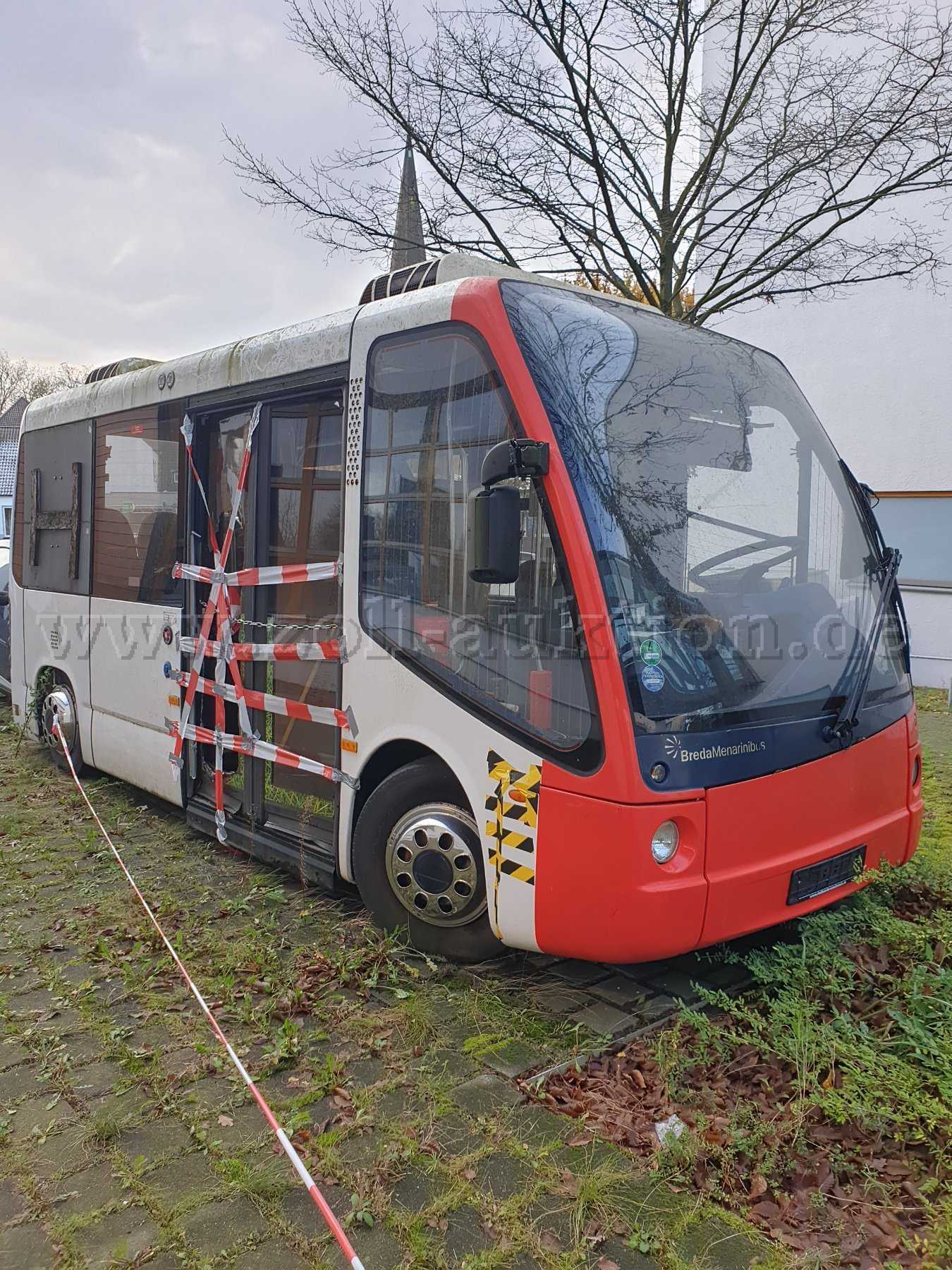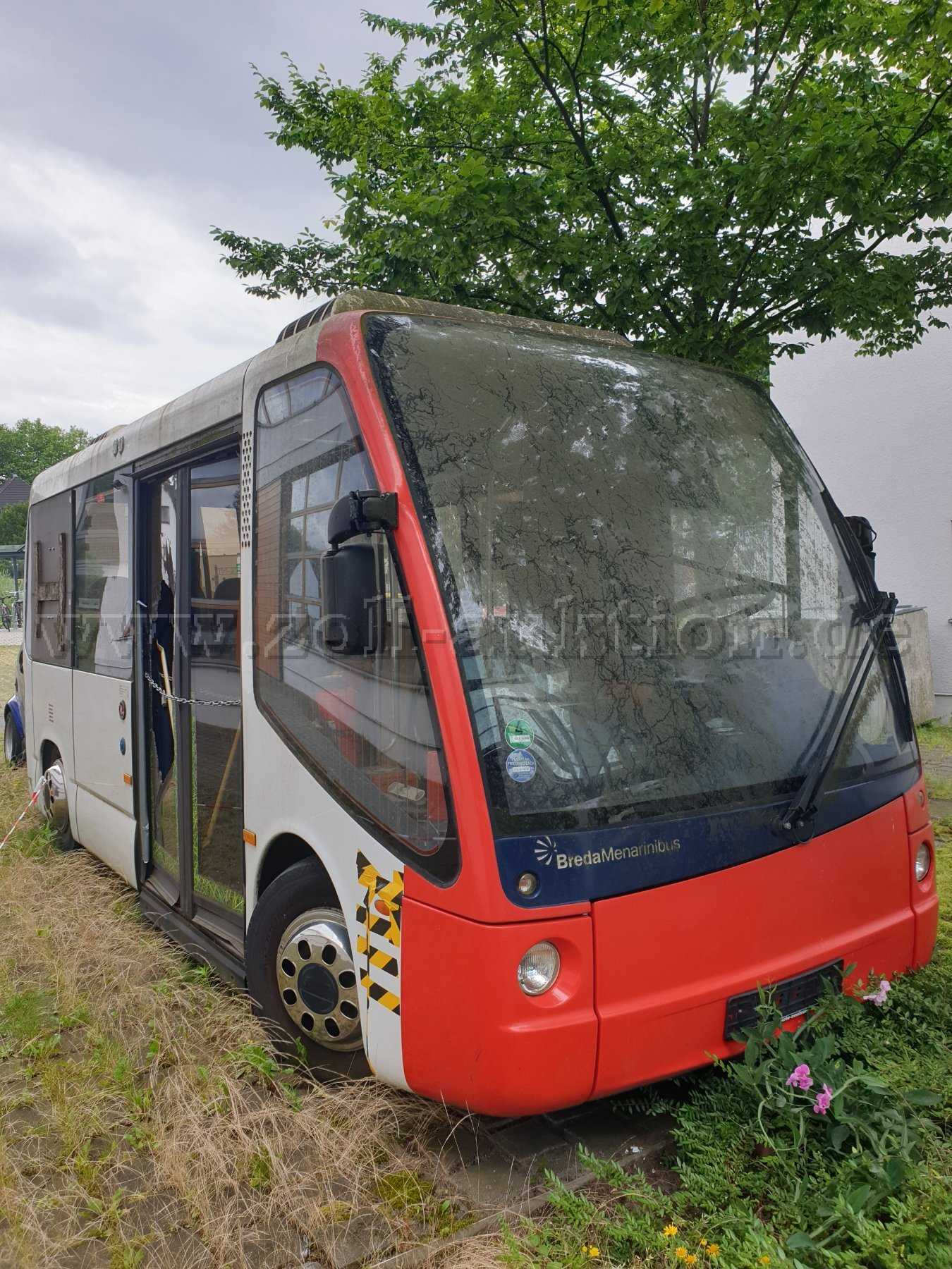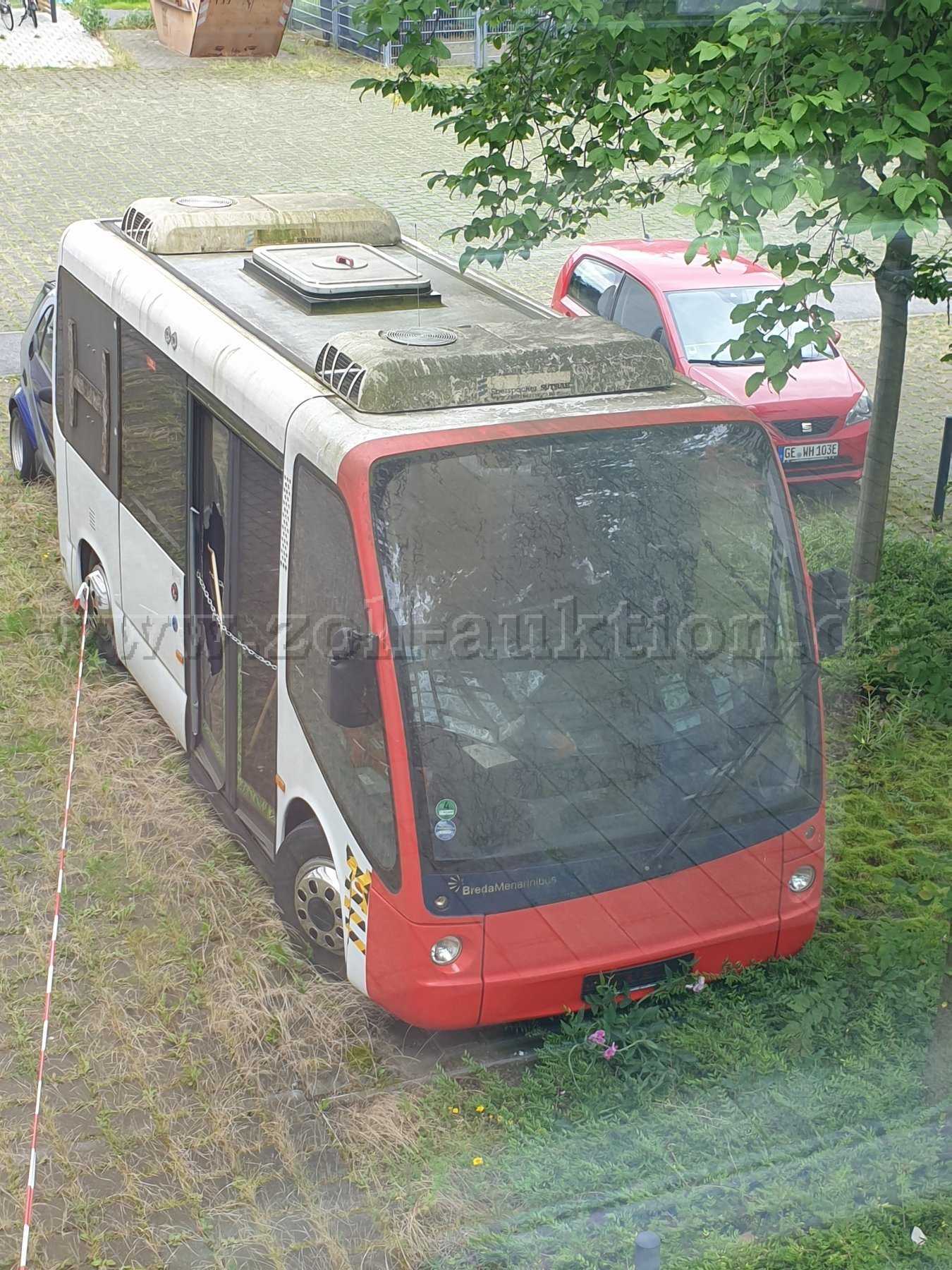 „Zur Ersteigerung steht ein BredaMenarinibus 200ECO, 30 KW, EZ: 21.07.2011, Außerbetriebsetzung: 17.01.2017, km-Stand nicht ablesbar, Elektro, Farbe weiß, rot, HU: keine, Sicherheitsprüfung: keine.