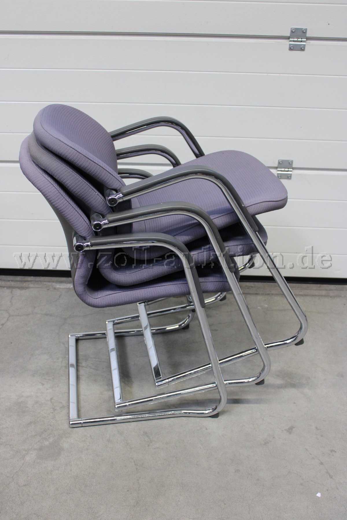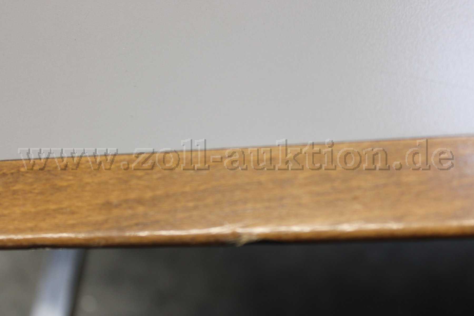 - Zustand: Leichte Gebrauchspuren vorhanden; Kleinere Flecken oder Abrieb und Schäden am Sitzpolster und Kratzer am Gestell; 1 fehlende Armlehne an einem 60 cm breiten Stuhl