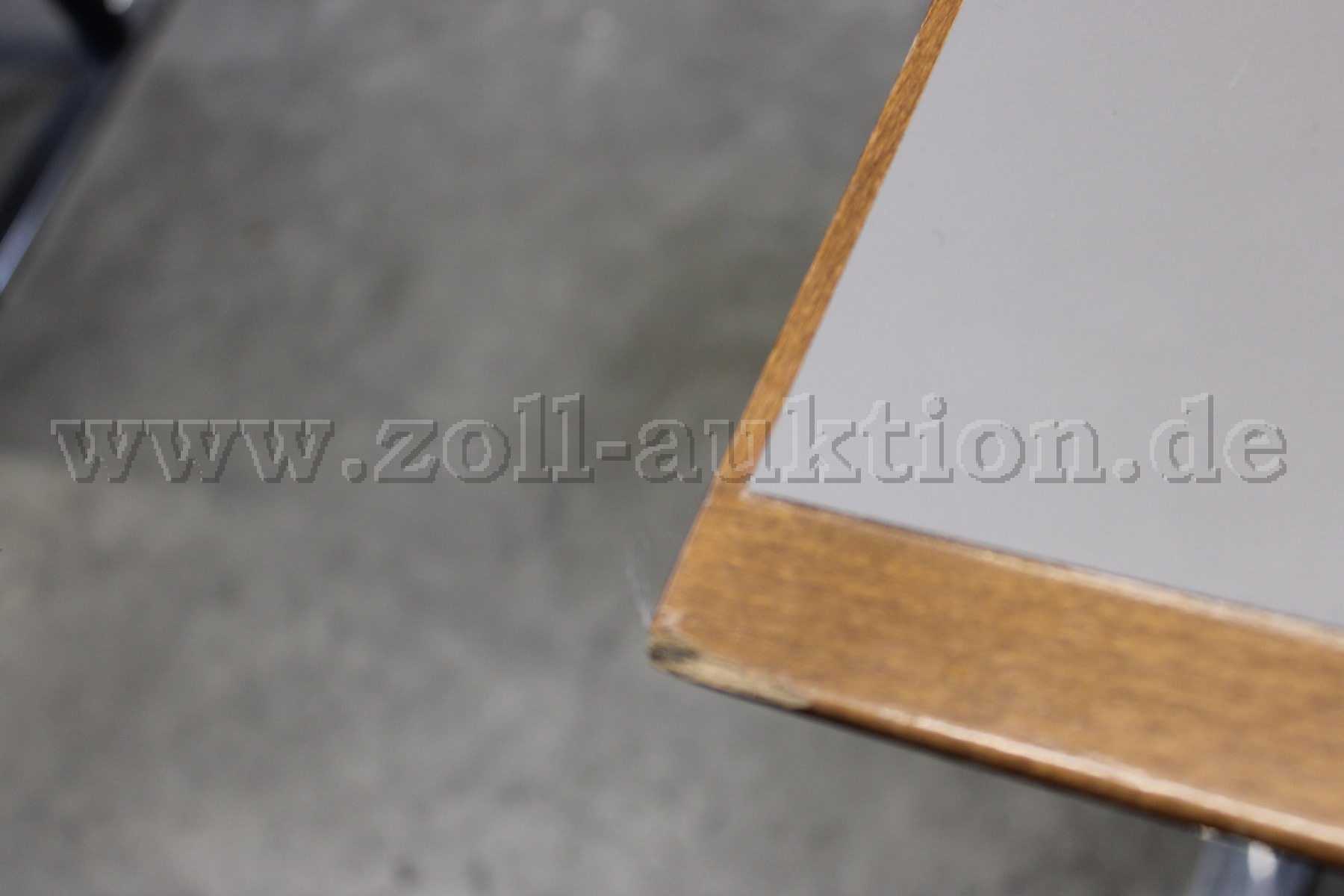 - Farbe: Hellgrau (Tischplatte), Buche (Umleimer), Silber/Schwarz (Gestell)