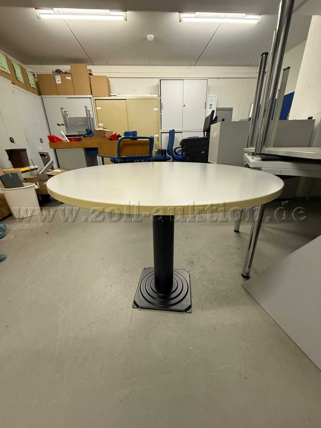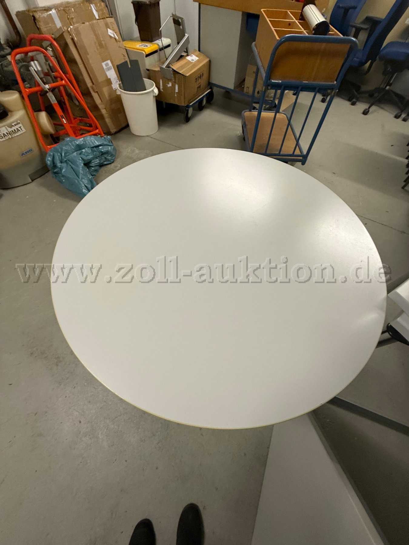 Gegenstand der Auktion ist ein runder Besprechungstisch, die Tischplatte ist platin-grau und hat einen Durchmesser von 1,00 m und eine Höhe von 0,73 m.