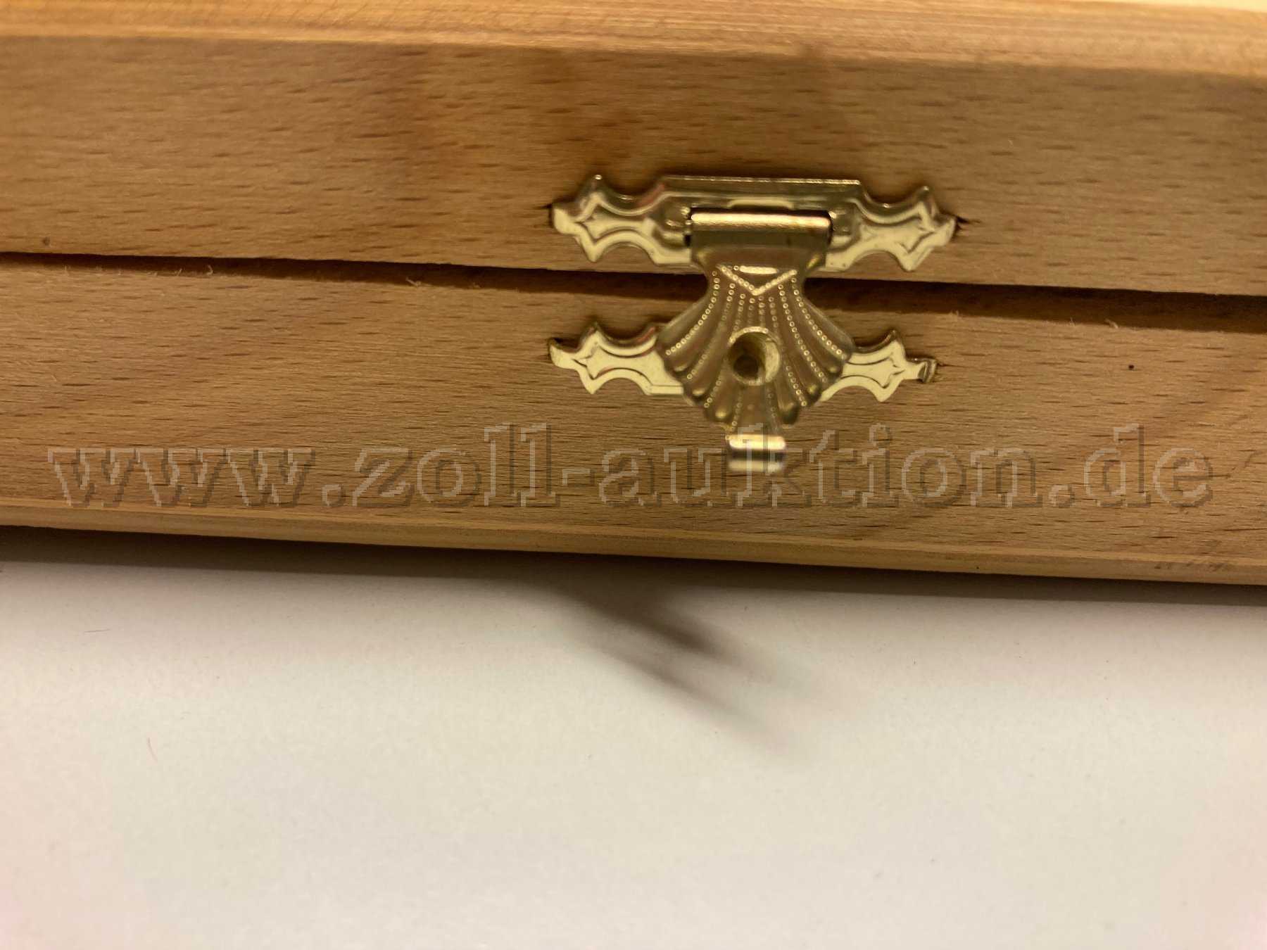Es handelt sich um einen gepfändeten Gegenstand. Der Besteckkasten und die einzelnen Bestecke sind gebraucht. Alle Teile wurden grob gereinigt.