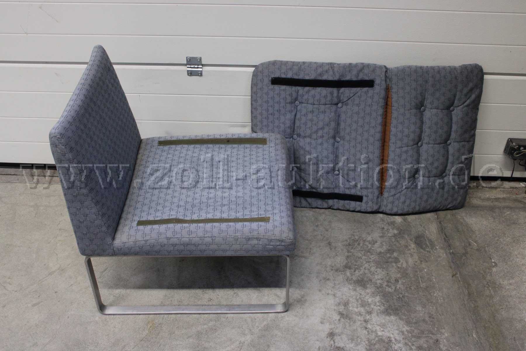 - Zustand: stark verschmutzt, Gebrauchsspuren auf Bezug vorhanden (Abrieb, ggf. kleinere Flecken, Staub- und Schmutzanhaftungen) ein fehlender Kopf am Sitzbezug; Kratzer/Abrieb an den Füßen