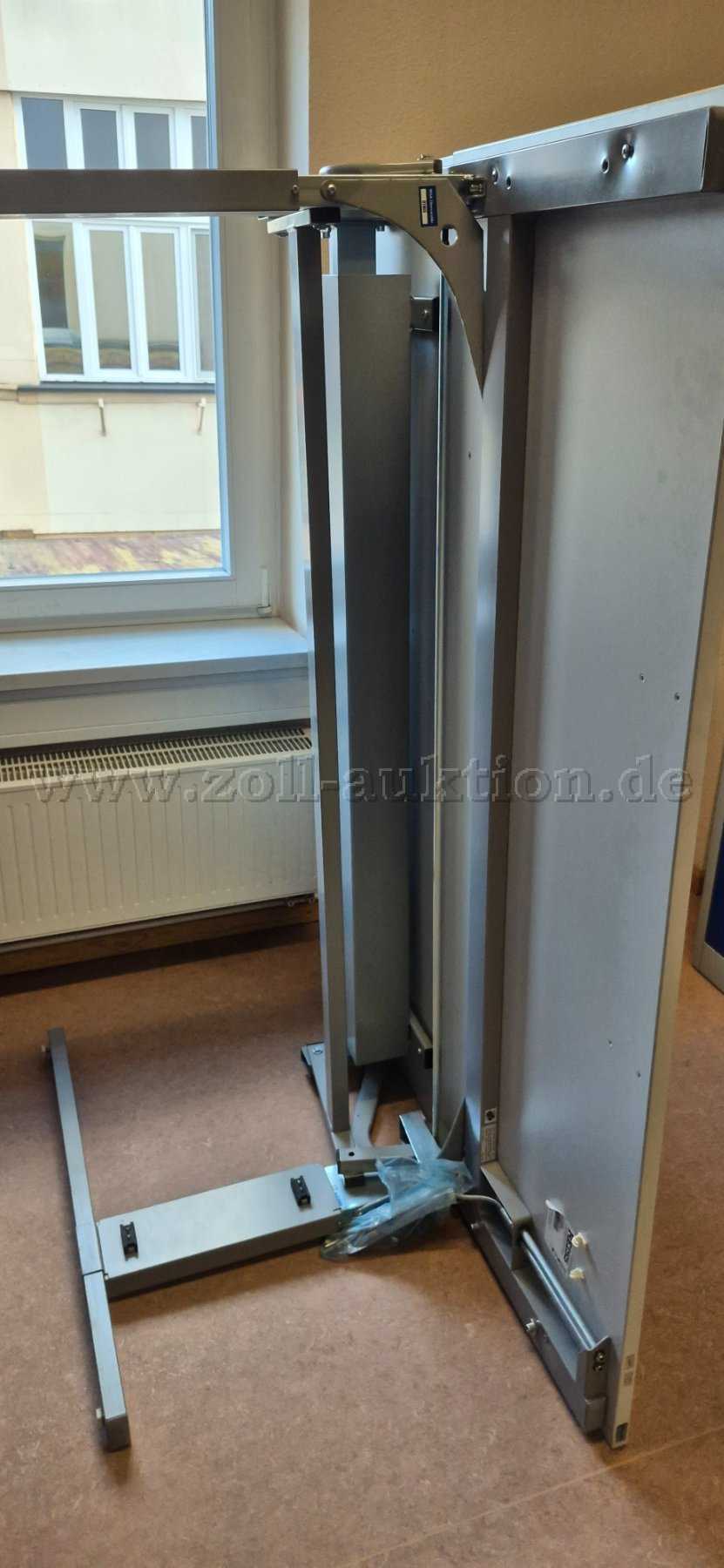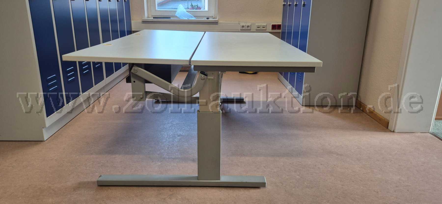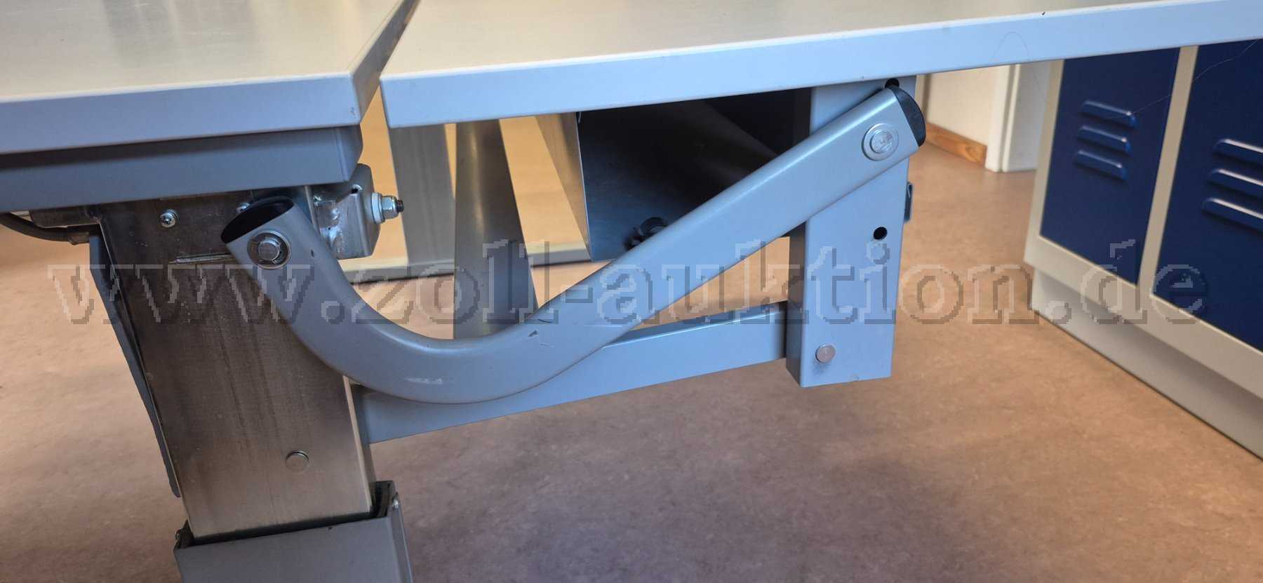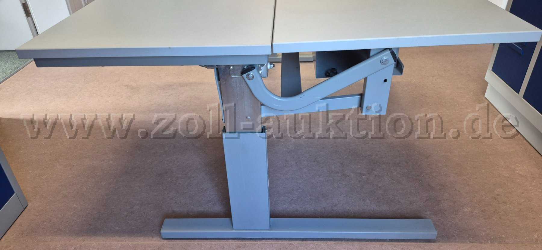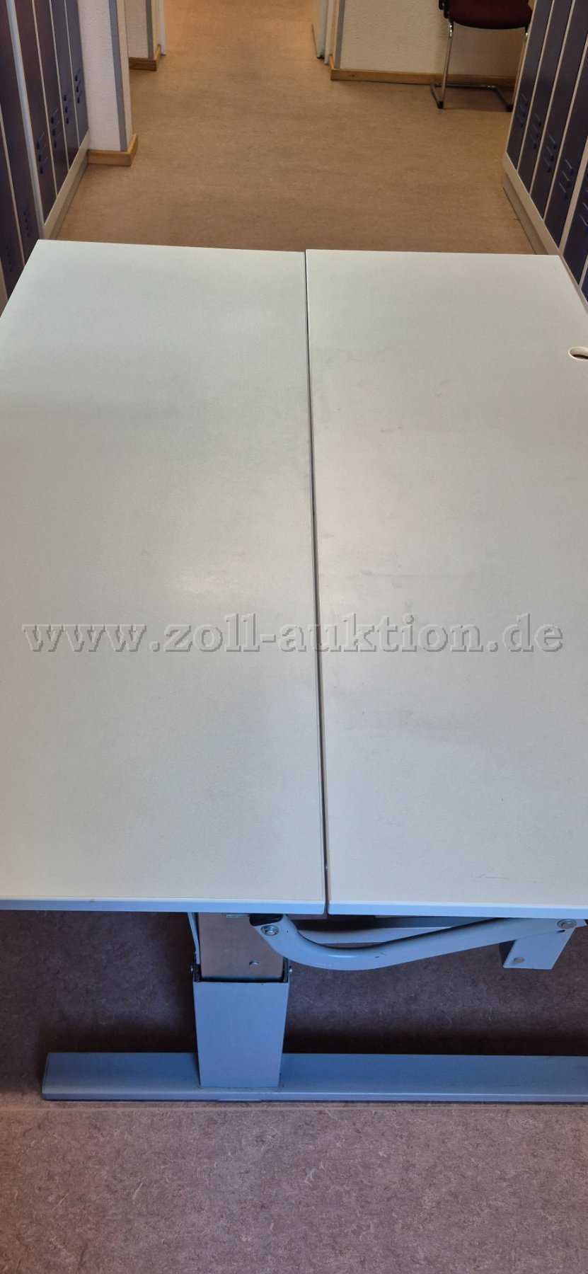 Der Tisch ist auf einer Seite der Tischplatte von 53,50 cm bis 69,50 cm höhenverstellbar.