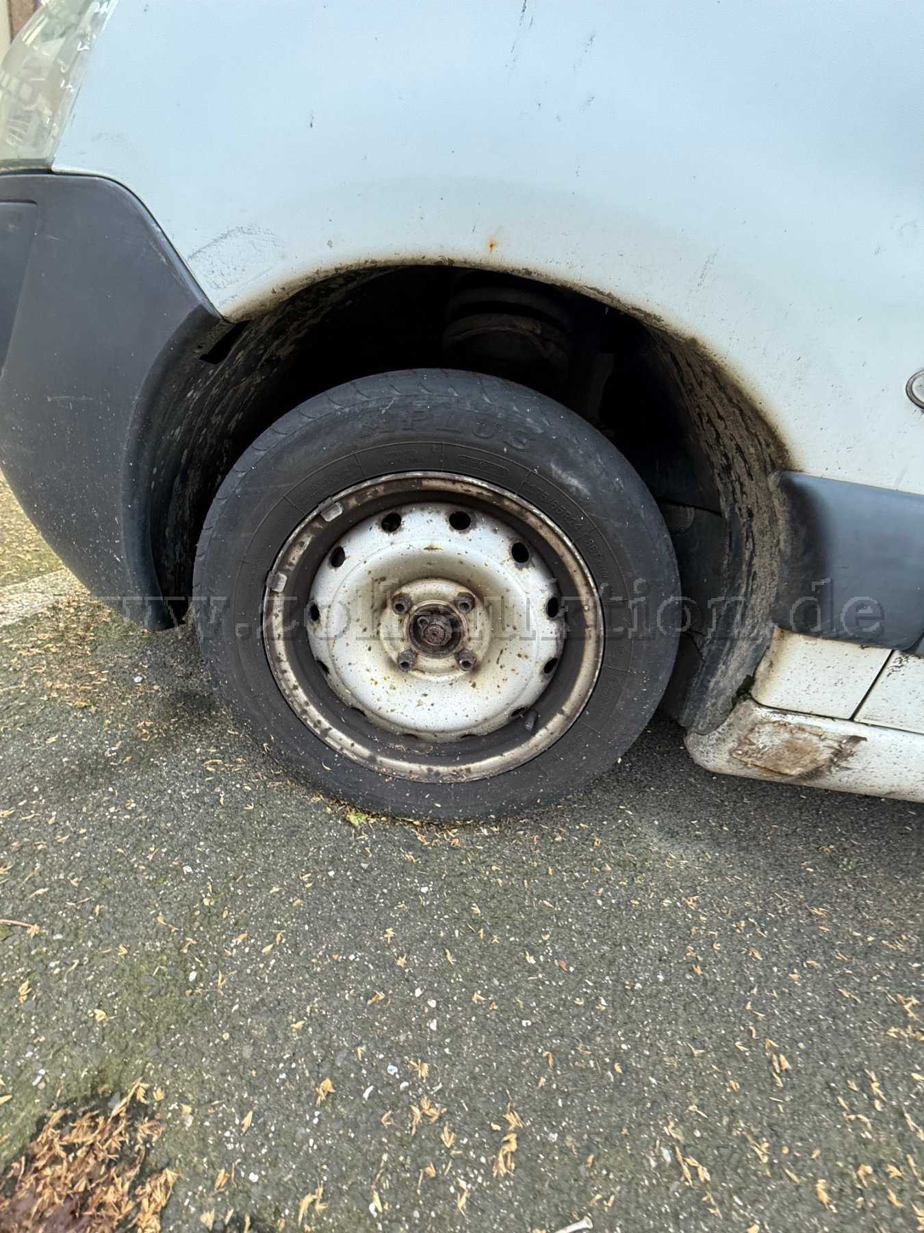Die Fahrertüre des Fahrzeuges ist offen. Das Fahrzeug befindet sich in einem unterdurchschnittlichen Allgemeinzustand. Es kann als wirtschaftlich verbraucht bezeichnet werden.