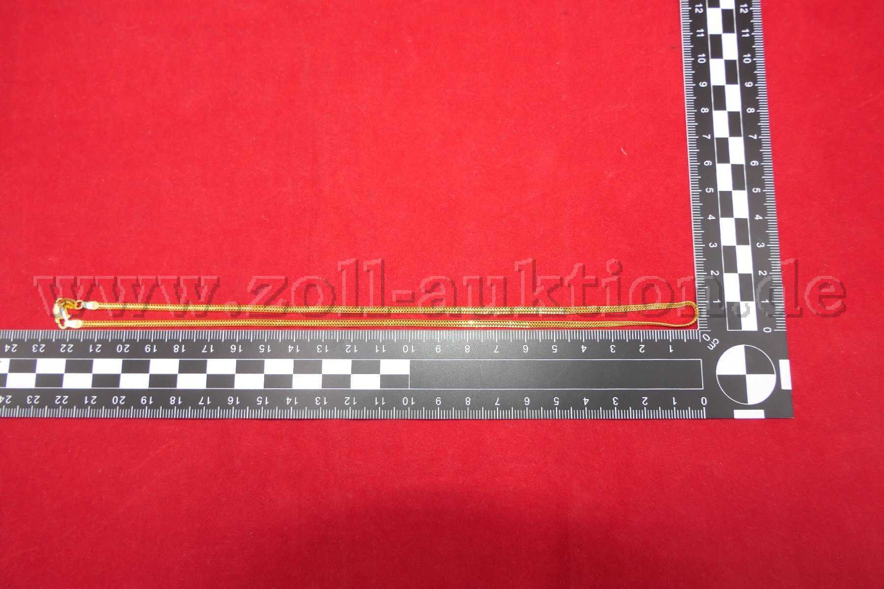 Das Gesamtgewicht der Kette beträgt ca. 6,4 g; das entspricht 5,86 g Feingold.