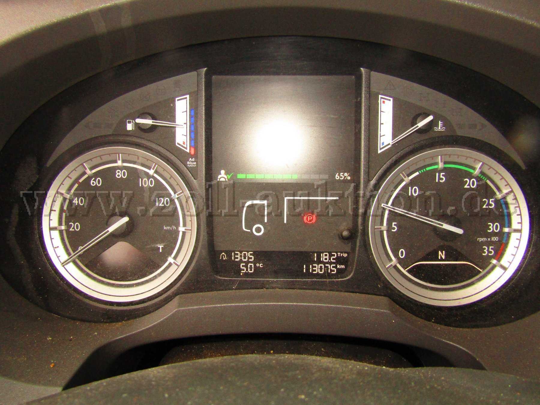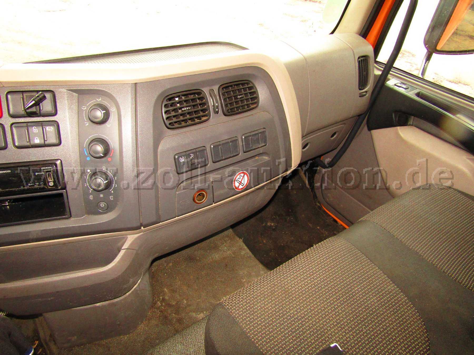 Das Fahrzeug ist funktionsfähig und weist die für den Einsatz sowie das Alter entsprechenden Gebrauchsspuren auf Lack „stumpf“, Aufkleber lösen sich ab. Kofferaufbau an mehreren Stellen Kratz und Schrammbeschädigungen auf, Spiegelkappen links und rechts Gehäuse defekt, Kratzer vorne rechts am Luftleitblech.