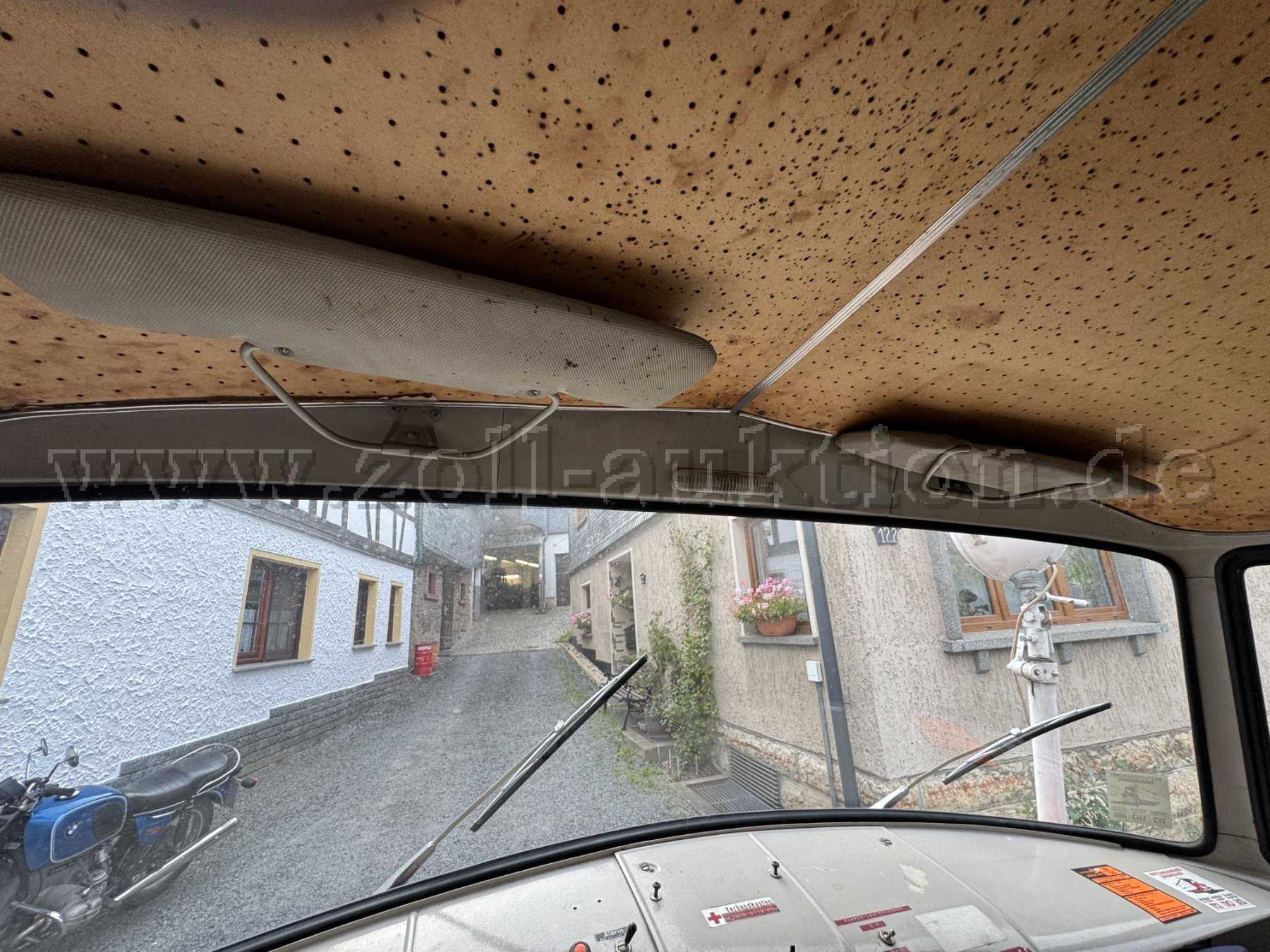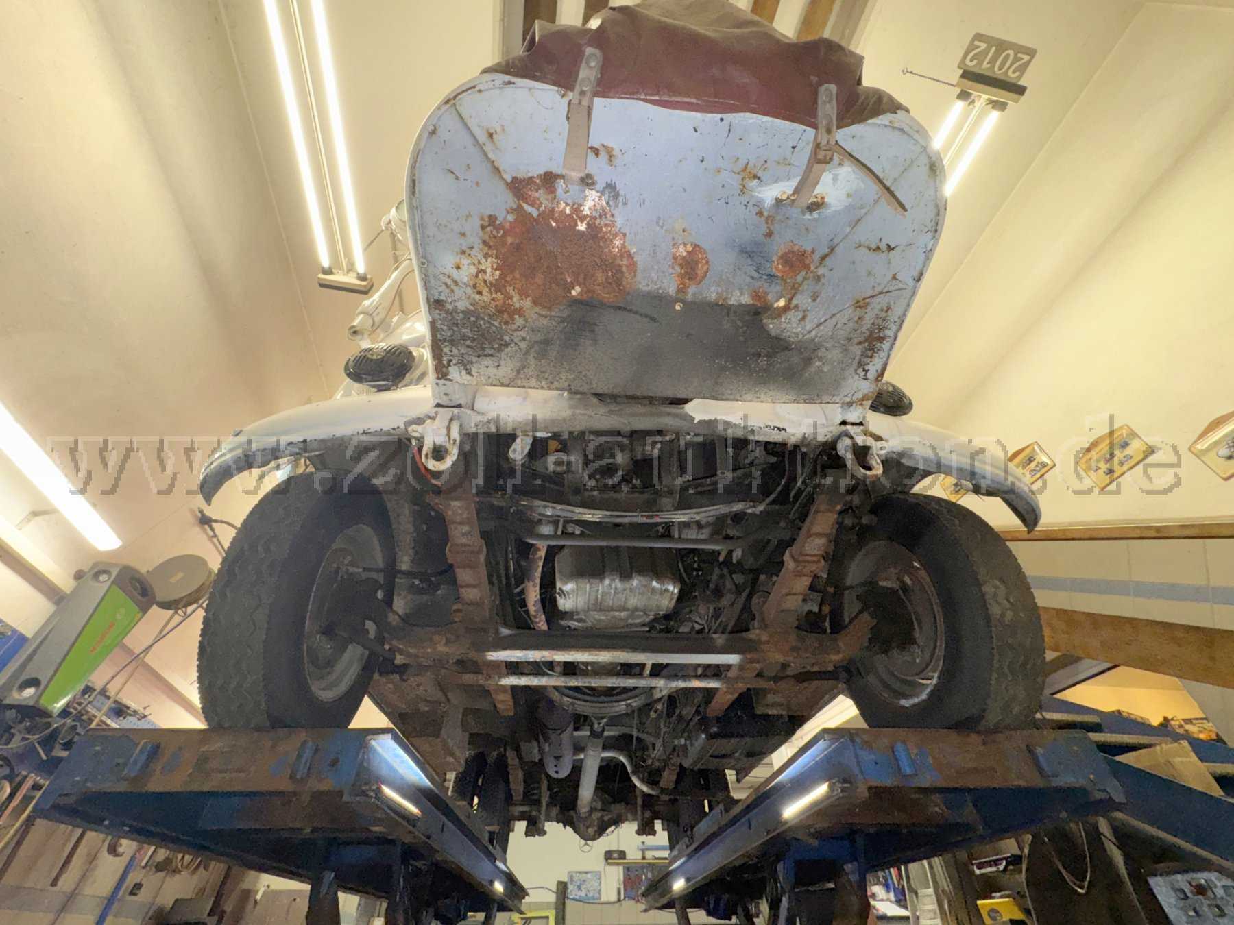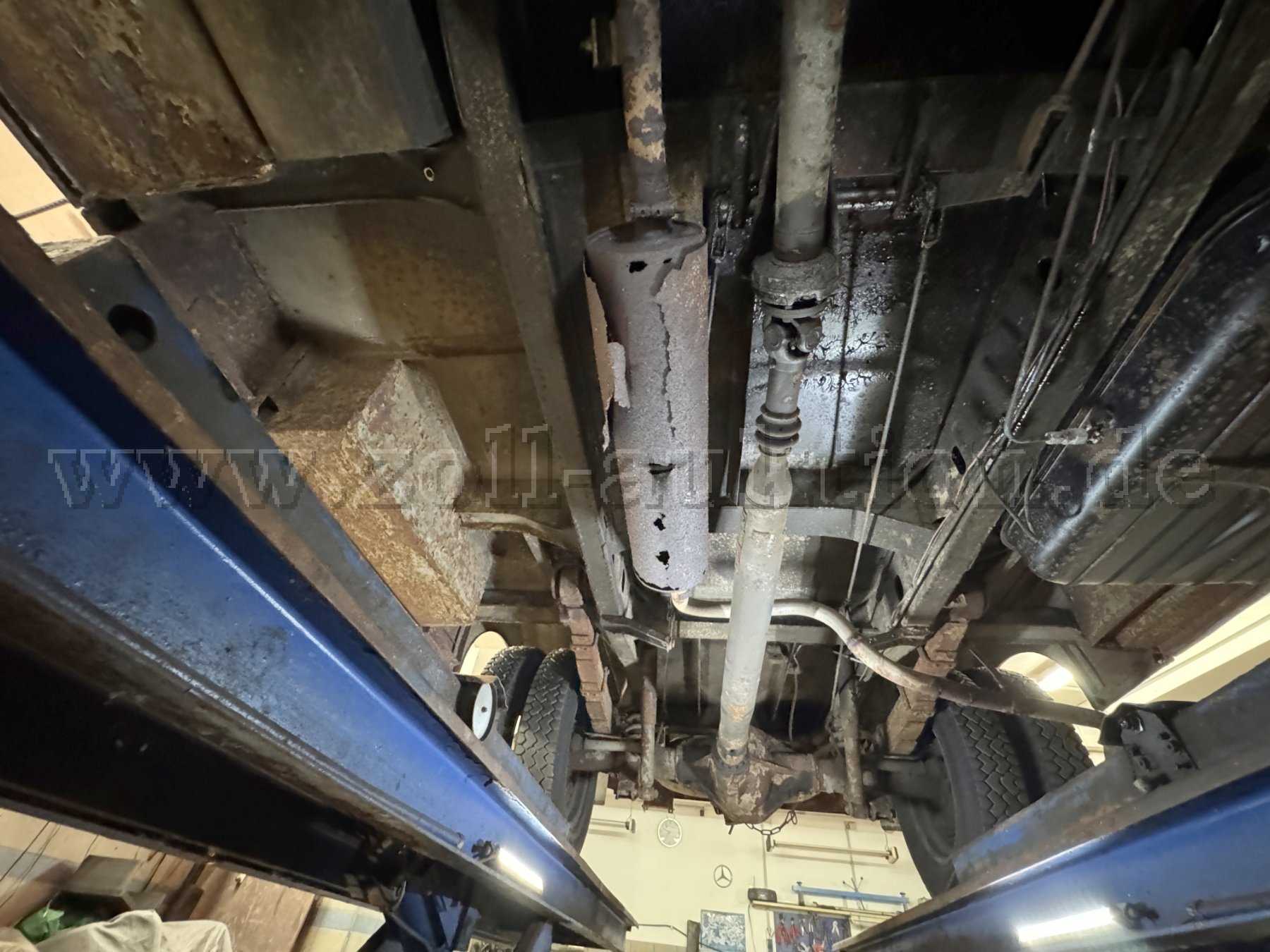 Das Fahrzeug weist dem Alter entsprechende Gebrauchsspuren auf. Die Sitze teilweise verschlissen und es befinden sich Korrosionen am Unterboden und an der Abgasanlage.