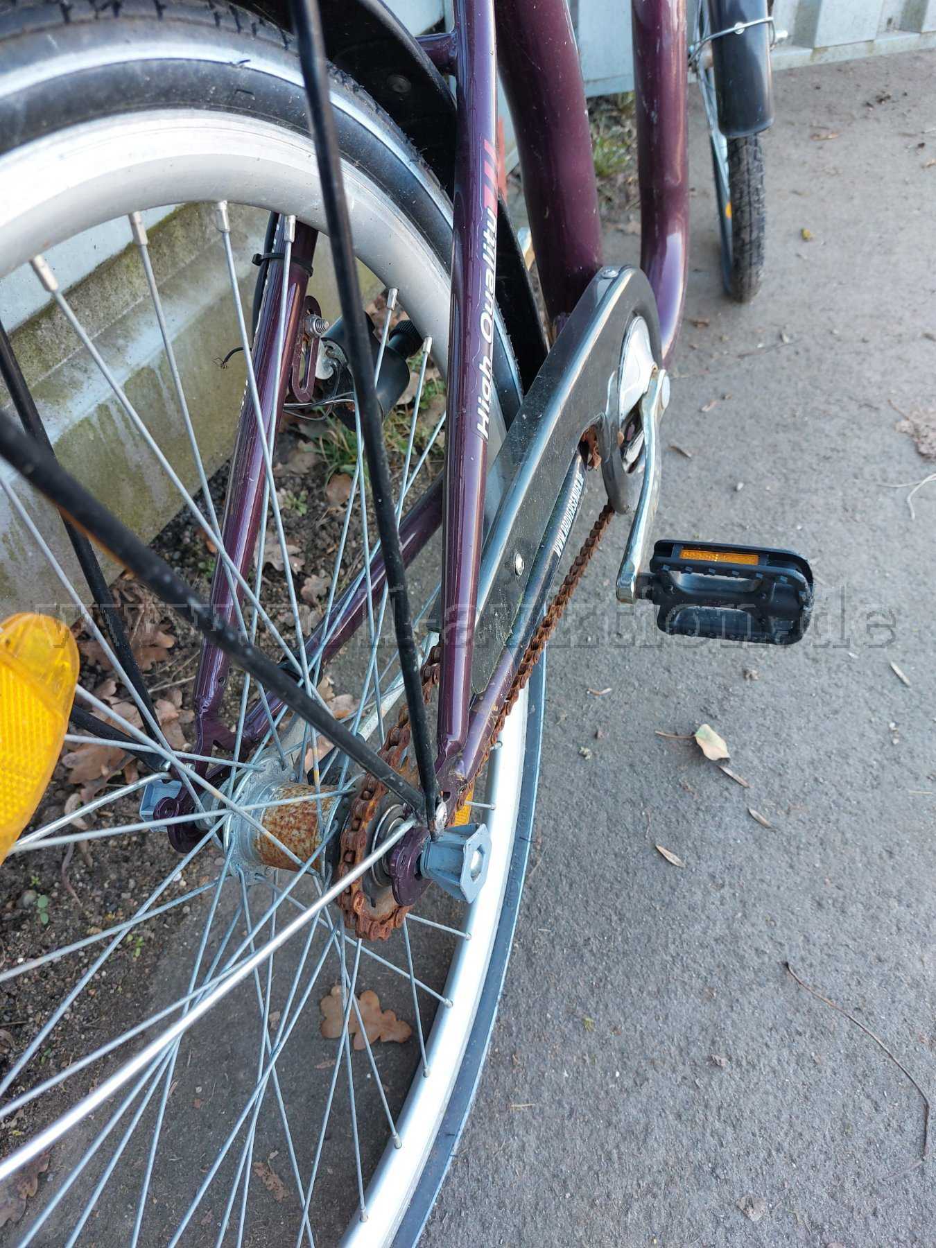 Es handelt sich hierbei um ein Fundfahrrad, welches so versteigert wird, wie es abgegeben bzw. vorgefunden wurde.