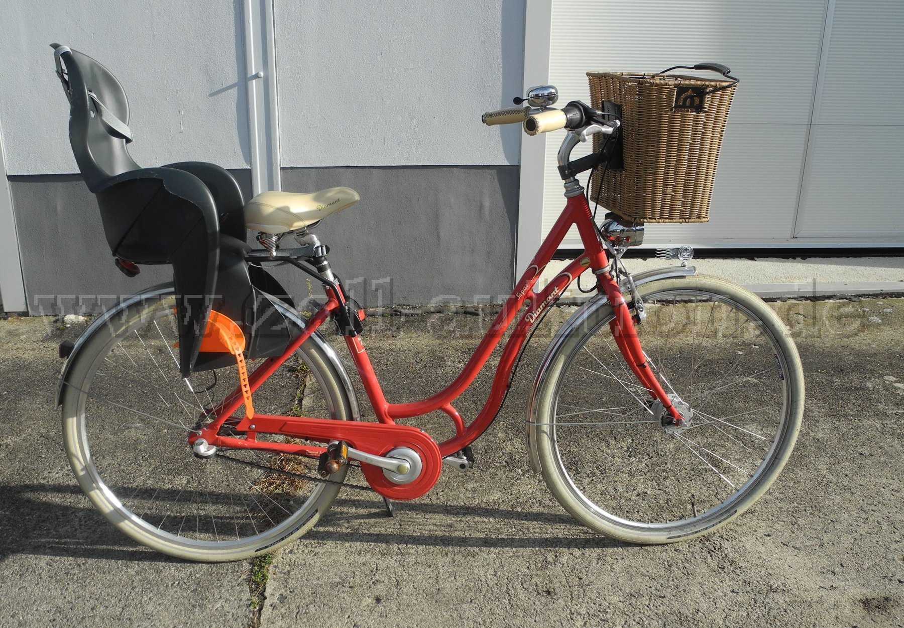 Angeboten wir hier ein originales Damenrad der Marke Diamant mit Fahrradkorb und Kindersitz im gebrauchten Zustand.