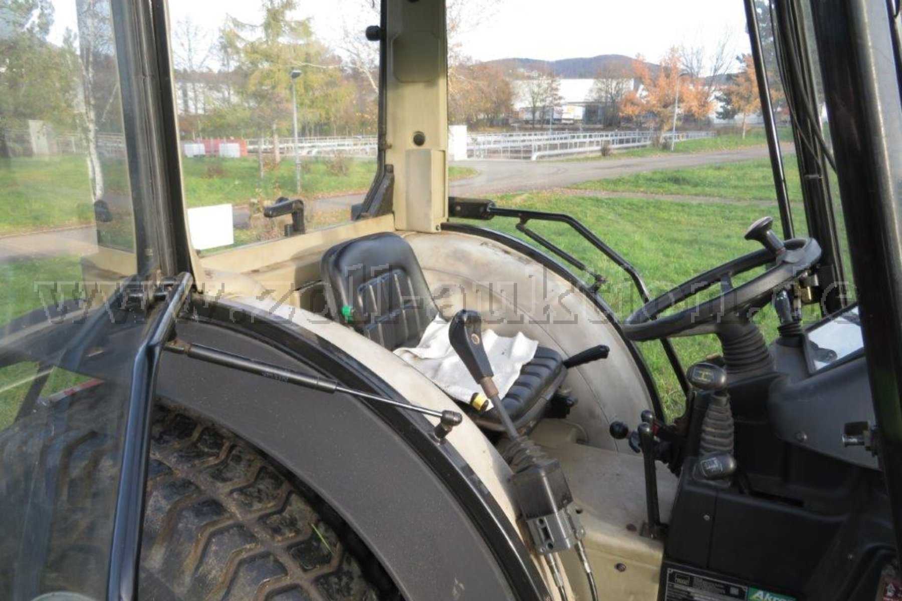 Vorrüstung RKL, Front- und Heckzapfwelle, Heizung, Front-Scheibenwischer, Anhängerkupplung, mechanisches Synchron SLHWendegetriebe 12 Vorwärts- und 12 Rückwärtsgänge, Mitsubishi Vierzylinder-Dieselmotor, turboaufgeladen (S4L-T61ST), Stahlfelgen