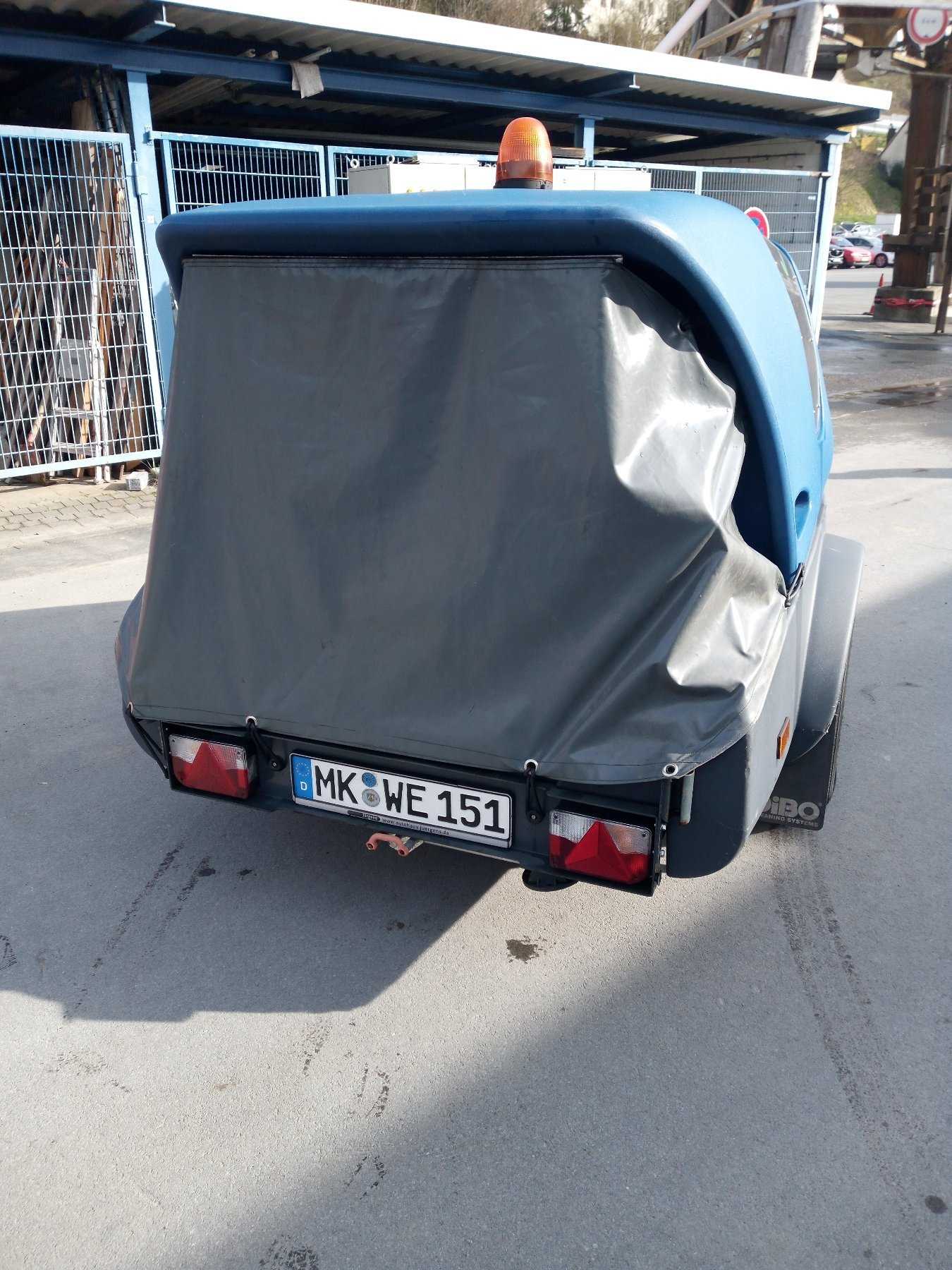 Zur Versteigerung steht ein Heißwasseranhänger des Herstellers DIBO. Das angehängte Arbeitsgerät wurde als kommunales Nutzfahrzeug eingesetzt und wird nun ausgesondert.