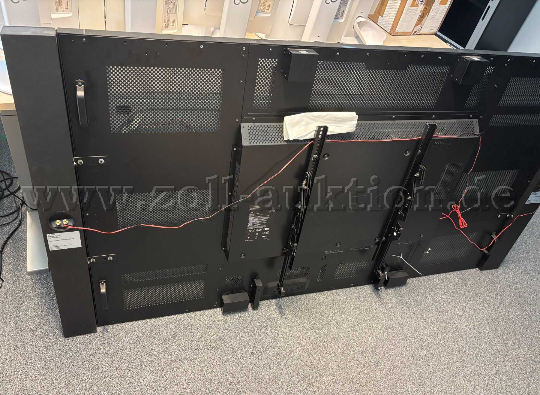 - Lieferumfang: Inkl. Wandhalterung, zwei Tragegriffe auf der Rückseite, eine Fernbedingung, Kabel (siehe Foto), ohne Karton
