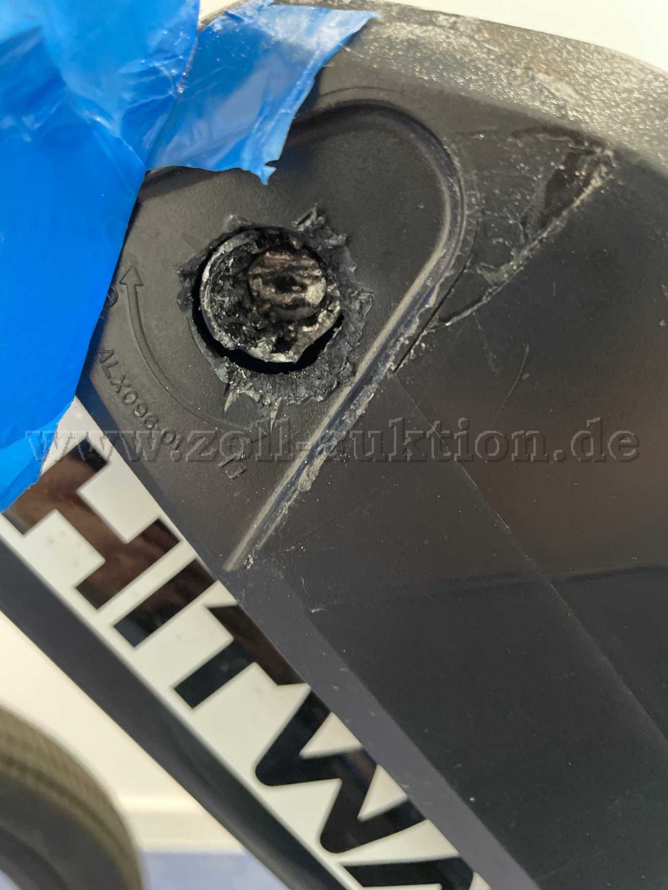 Schlüsselloch am Akku ist stark beschädigt, siehe Foto.