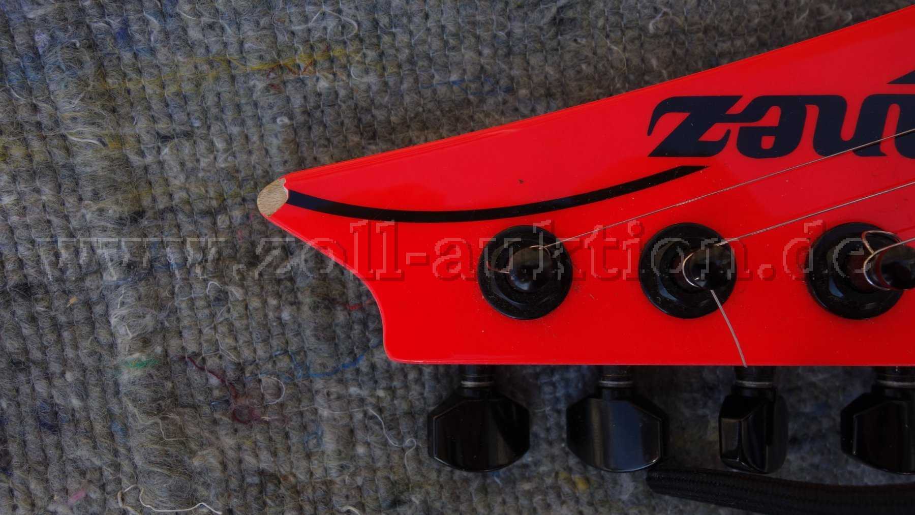 Gebrauchsspuren sind vorhanden, z.B. Lackabplatzung an der Kopfplatte und kleiner Riss am Korpus (s. Bilder).