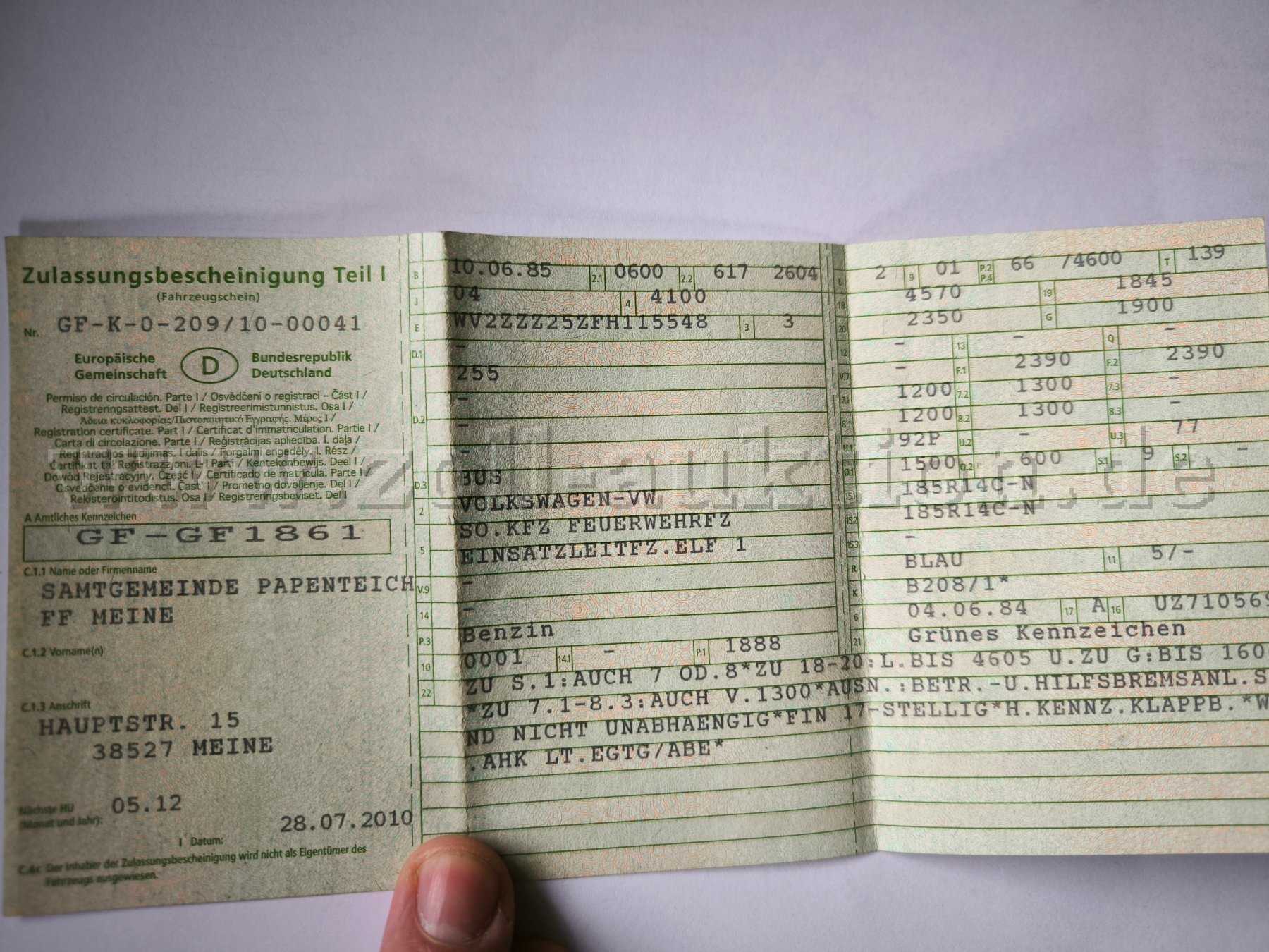 Fahrzeugschein und Fahrzeugbrief sind vorhanden.