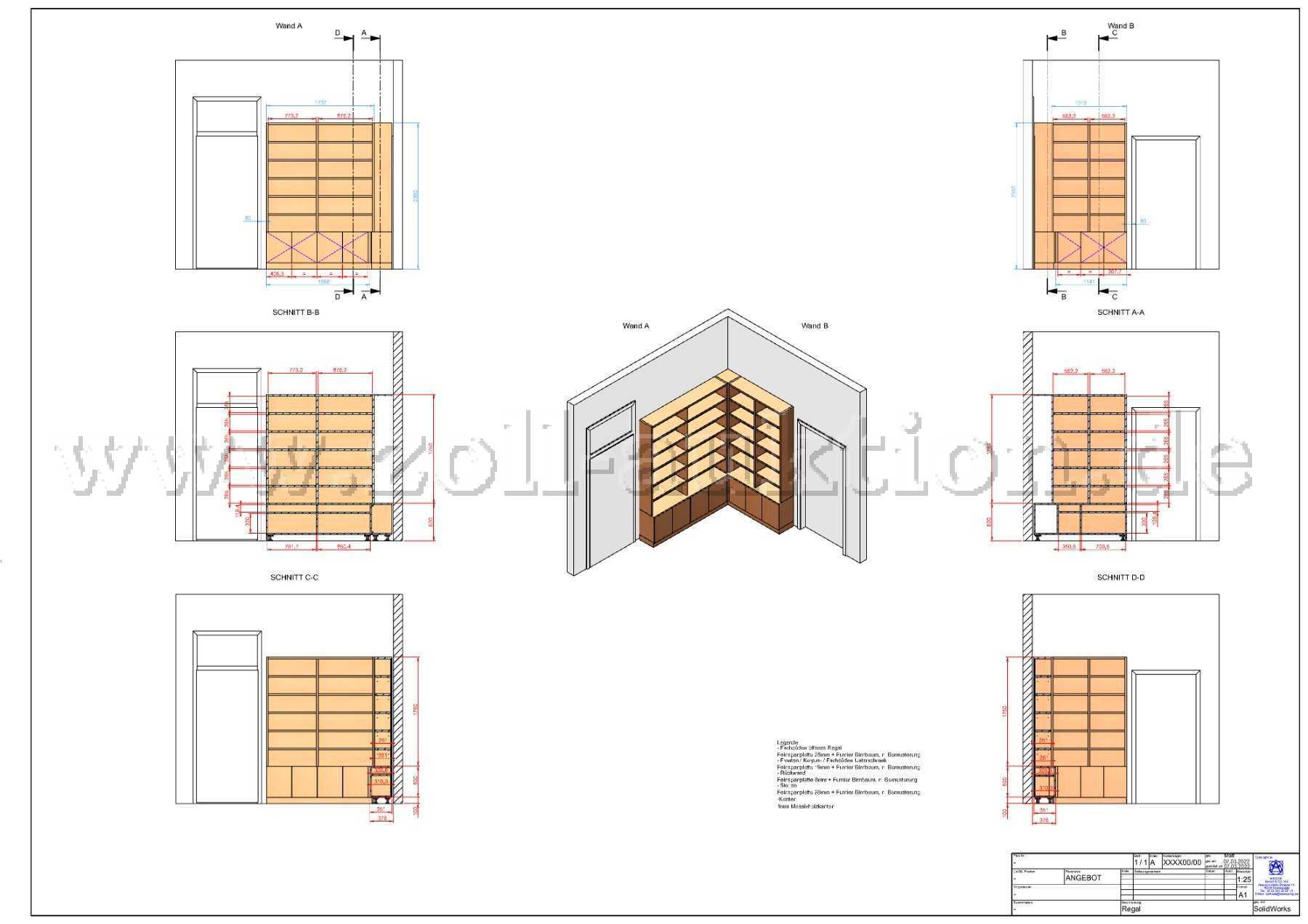 - Material: Feinspanplatte 19 mm + Furnier Birnbaum