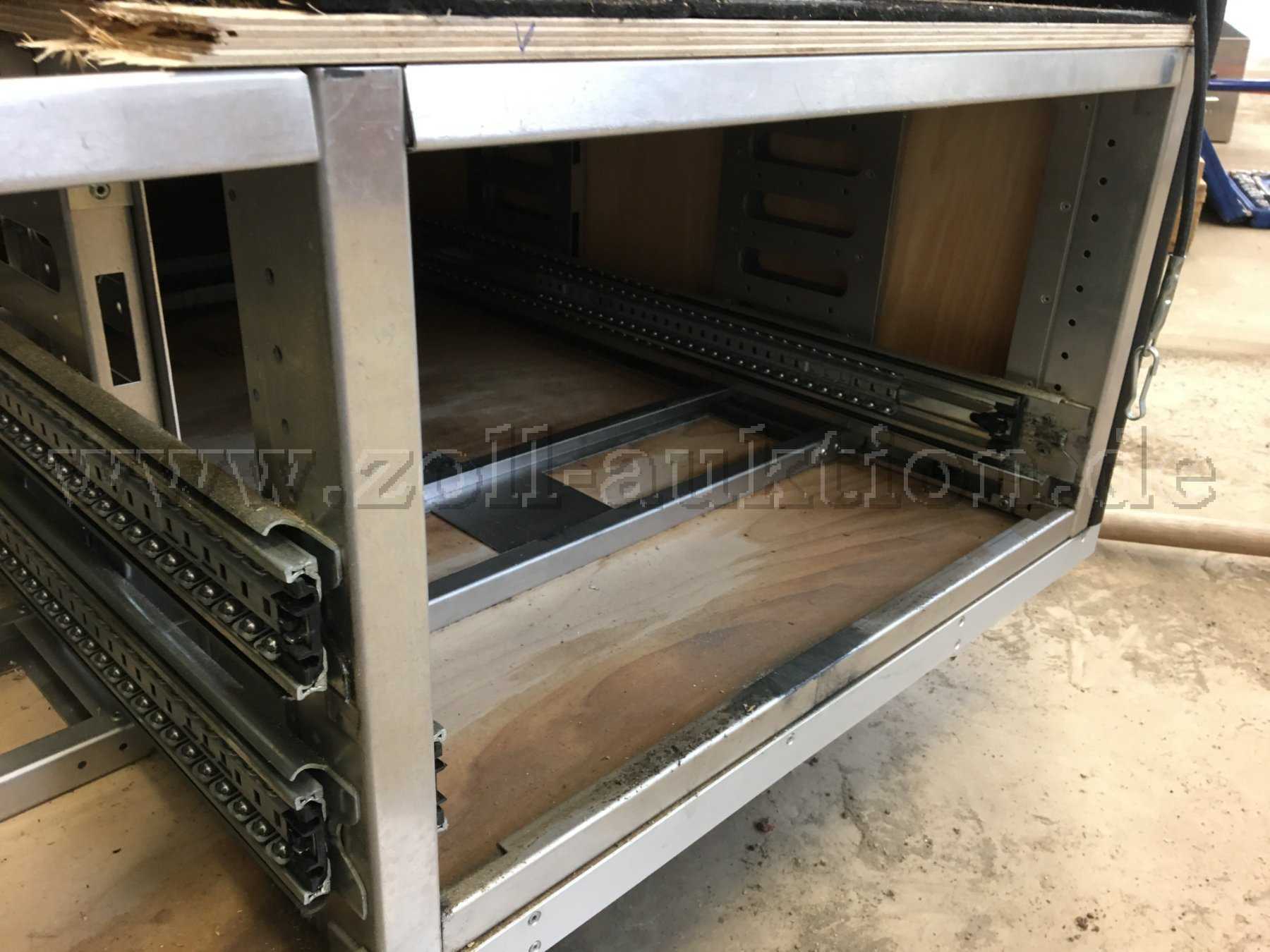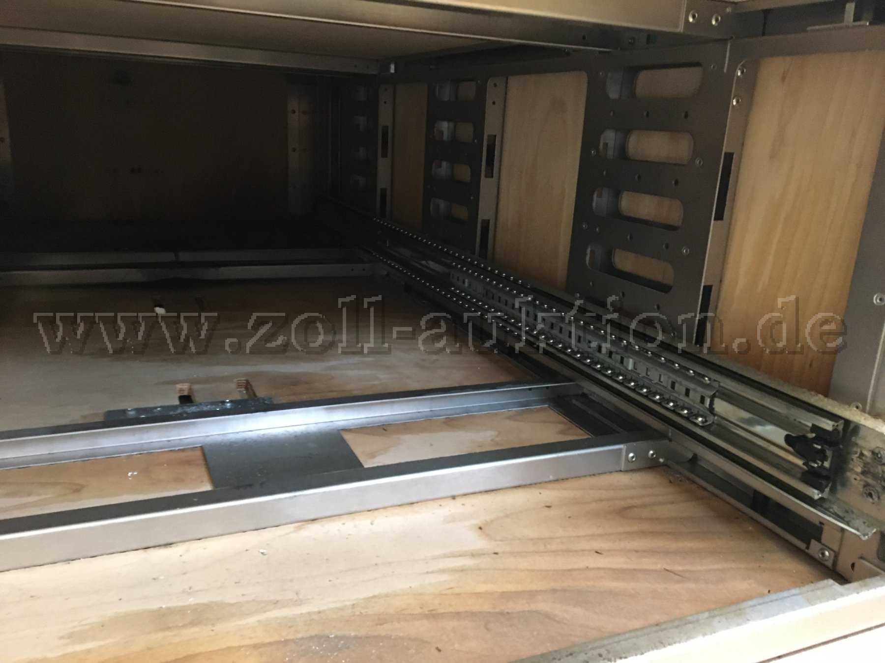 An den Seitenwänden über den Schubkästen befinden sich 2 Laufschienen von WIS, welche 160 cm lang sind.