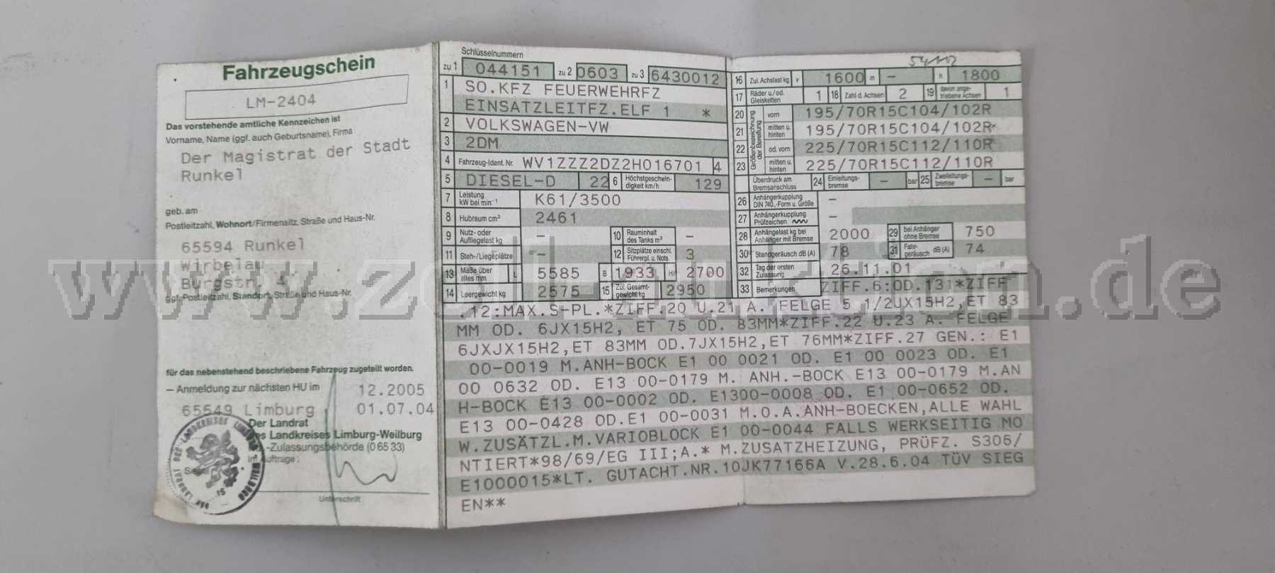 Gemäß Vorgaben des Hessischen Innenministeriums darf das Fahrzeug nicht mehr in Hessen als kommunales Feuerwehrfahrzeug zugelassen oder eingesetzt werden. Hierauf wird ausdrücklich hingewiesen.