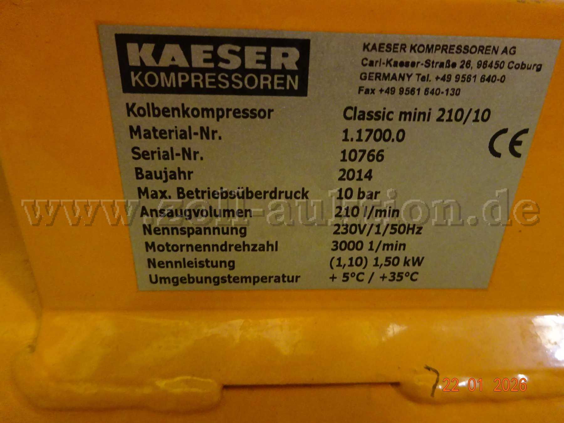 1 Fahrbarer Kaeser Kolbenkompressor Classic MIni 210/10 W
