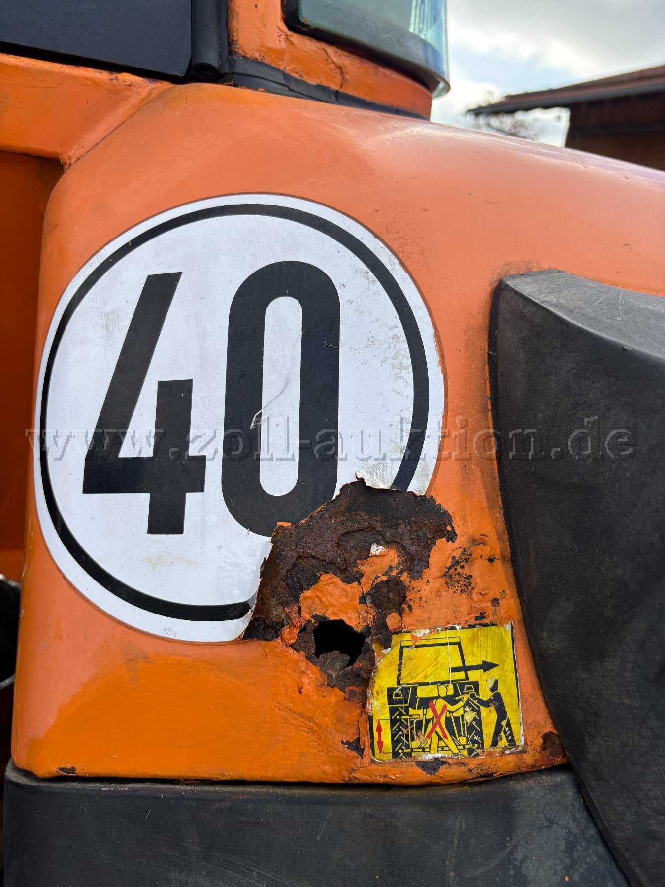 Fahrzeug wurde im kommunalen Umfeld im Winterdienst eingesetzt. Daher befindet sich rund um das Fahrzeug Rost. Stellen mit Durchrostungen, wie aus den Bildern zu entnehmen ist, sind auch vorhanden. Der Innenraum (voll funktionsfähig) ist in einem alter entsprechenden Zustand und zeigt typische Gebrauchsspuren (Abnutzung der Griffe & Sitzpolster zerrissen), die mit dem Alter entstehen. Das Fahrzeug war bis Sommer 2025 im Bauhof im Einsatz und wurde wegen einer Neuanschaffung außer Betrieb gesetzt. Der Schlepper hat gültigen TÜV bis Mai 2026. Bei der letzten Hauptuntersuchung wurden keine Mängel festgestellt. Der Kundendienst wurde regemäßig durch BayWa durchgeführt.