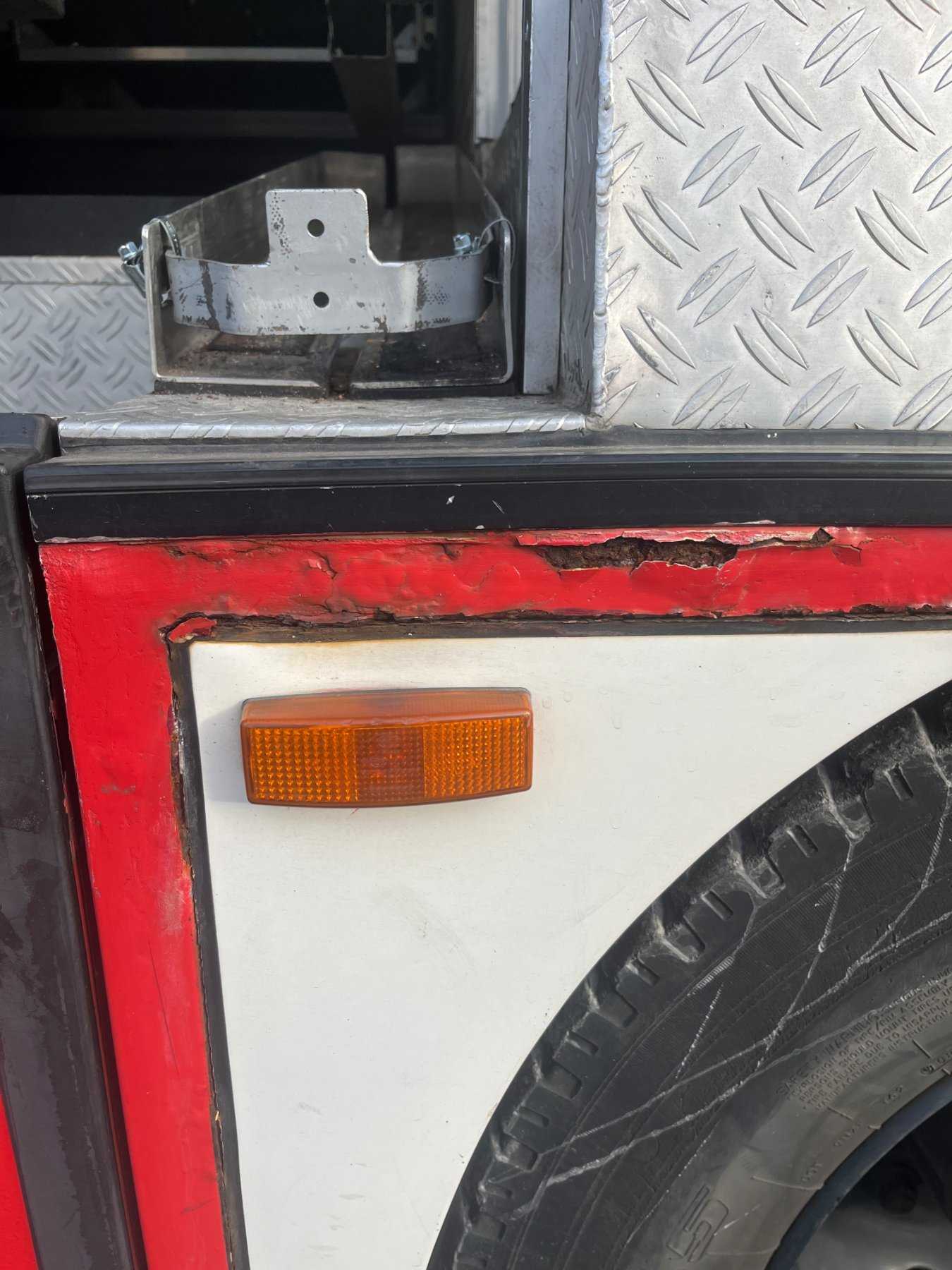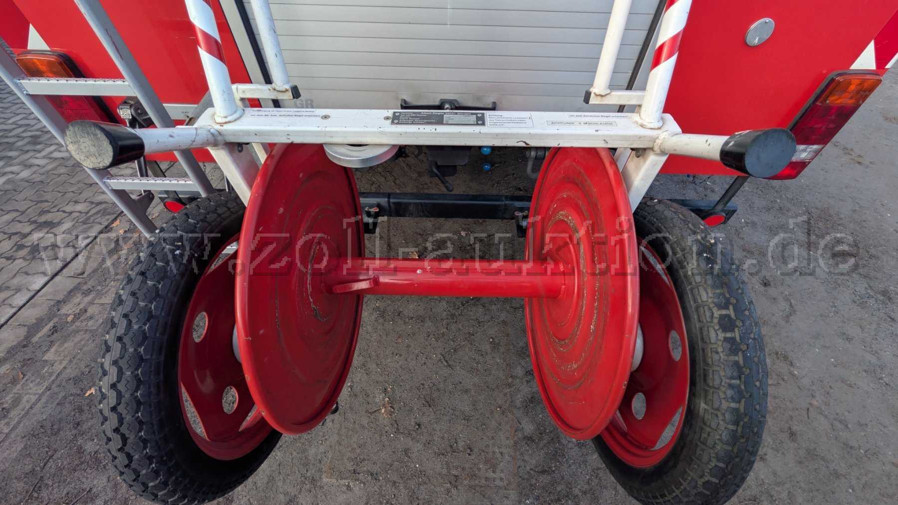 Ohne Funkgerät. Das Fahrzeug ist fahrbereit, es wurde im September 2025 ausgesondert. Die Reifen (vorne/hinten) sind porös und weisen ein geringes Restprofil auf. Hinzukommt, dass die Reifen nach längeren Standzeiten Luft verlieren. Ein Strahler Lichtmast auf dem Dach fehlt (s. Bild). Die Geräteraum-Kontrollleuchte leuchtet dauerhaft, da der Schalter selber einen Defekt aufweist. Der Motor weist eine leichte Undichtigkeit auf. Außerdem ist die Verriegelung der Haspel am Heck defekt. Beim Fahrzeug wurde der Tachometer ausgetauscht, da dieser defekt war (Km-Stand vor Austausch: 30.339km, Rechnung auf Nachfrage). Das Fahrzeug hat dem Alter entsprechende Gebrauchsspuren sowie Lackschäden/Abplatzungen (s. Bilder), sowie einige Roststellen (s. Bilder).